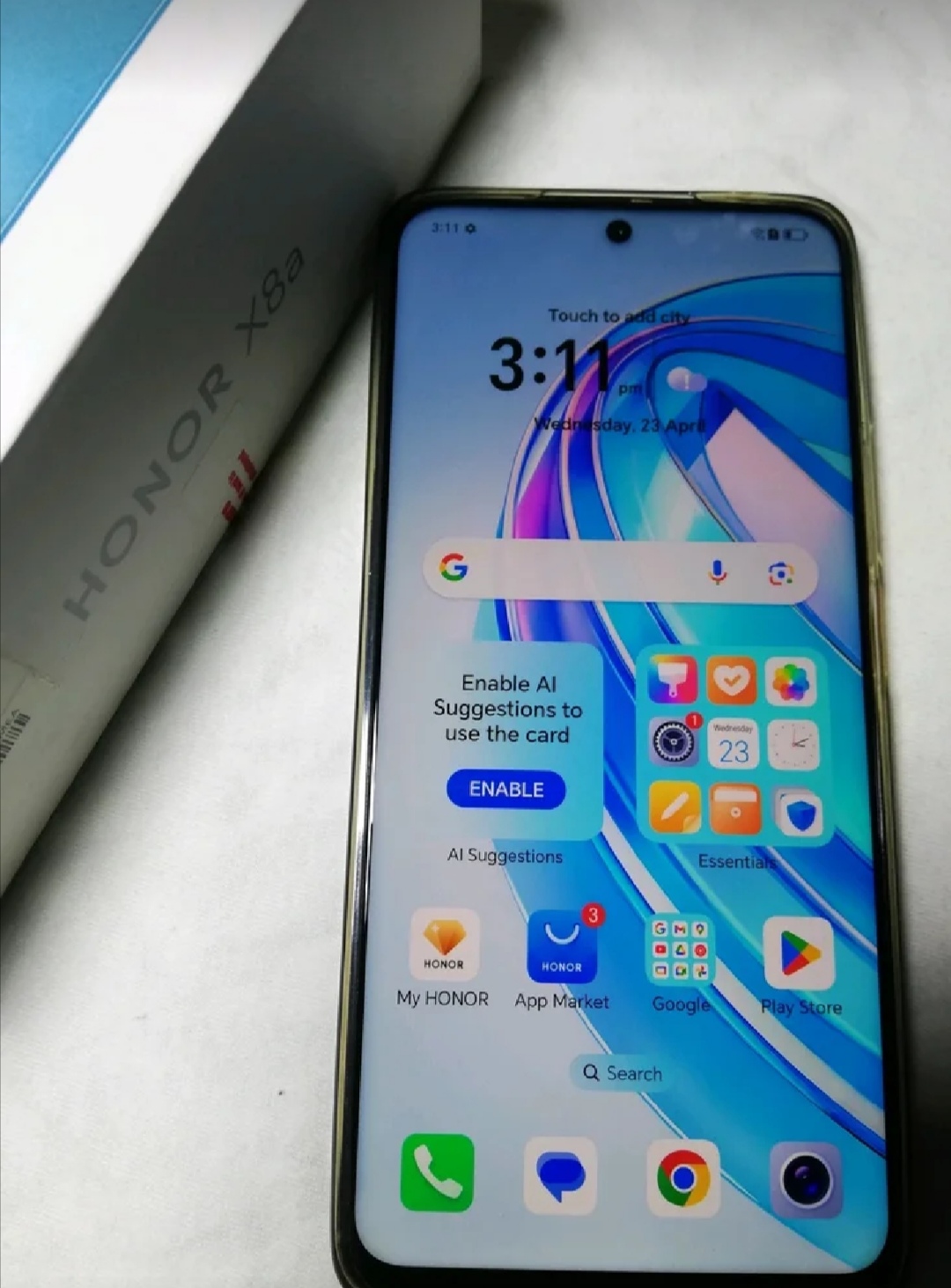 Midnight black Honor X8a cell phone. 128GB/6GB, 100MP triple camera, dual sim, 6.7-inch display. A fantastic phone, in excellent condition. Hardly used. Had a protective cover and screen protector on from new. Includes box, manual and original charger.