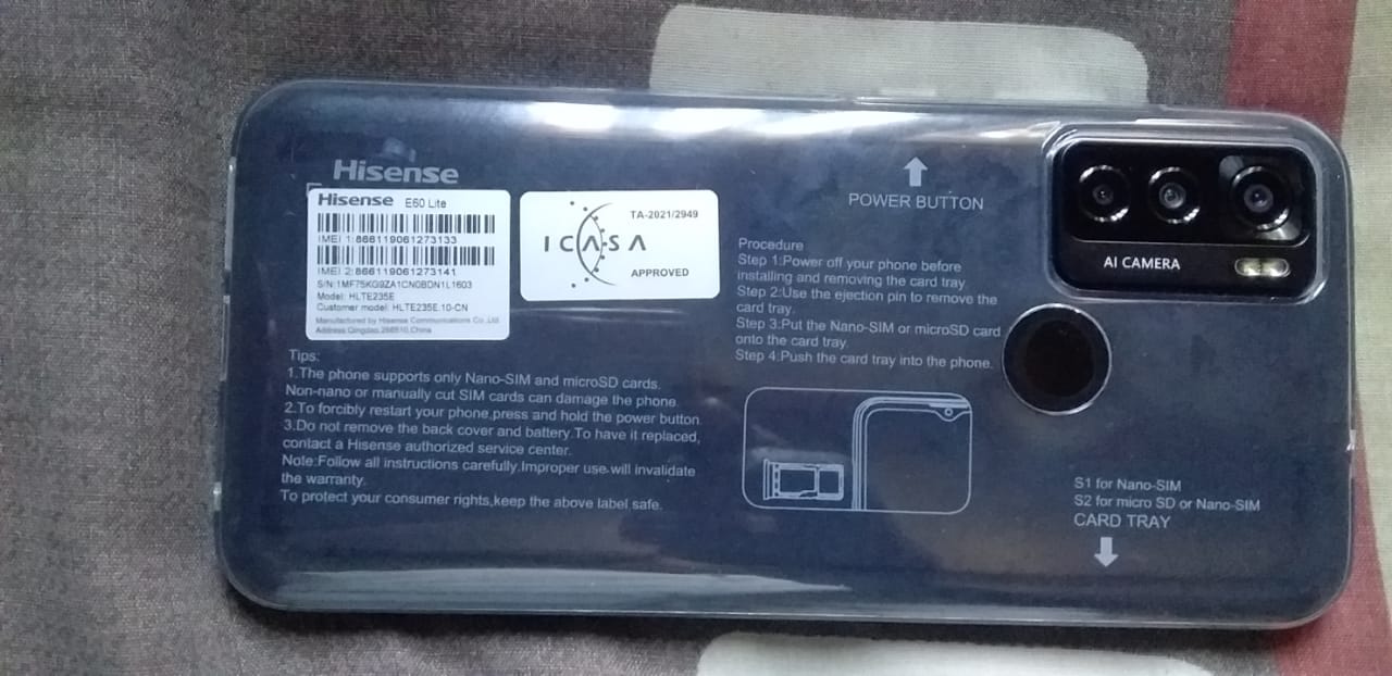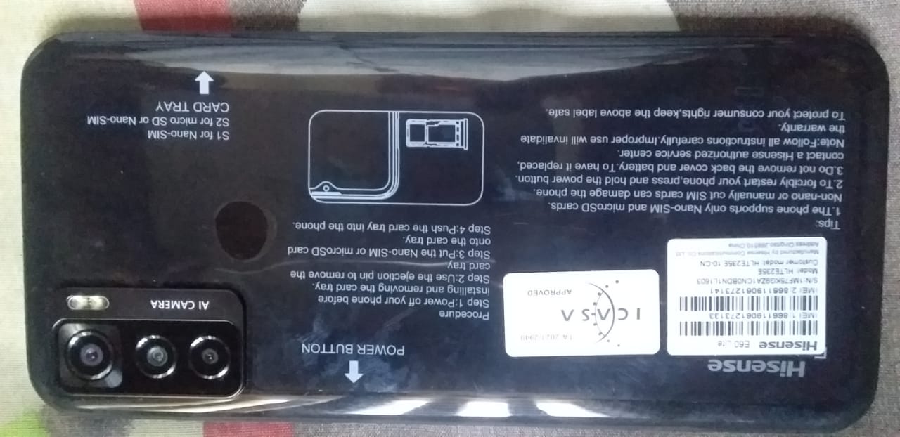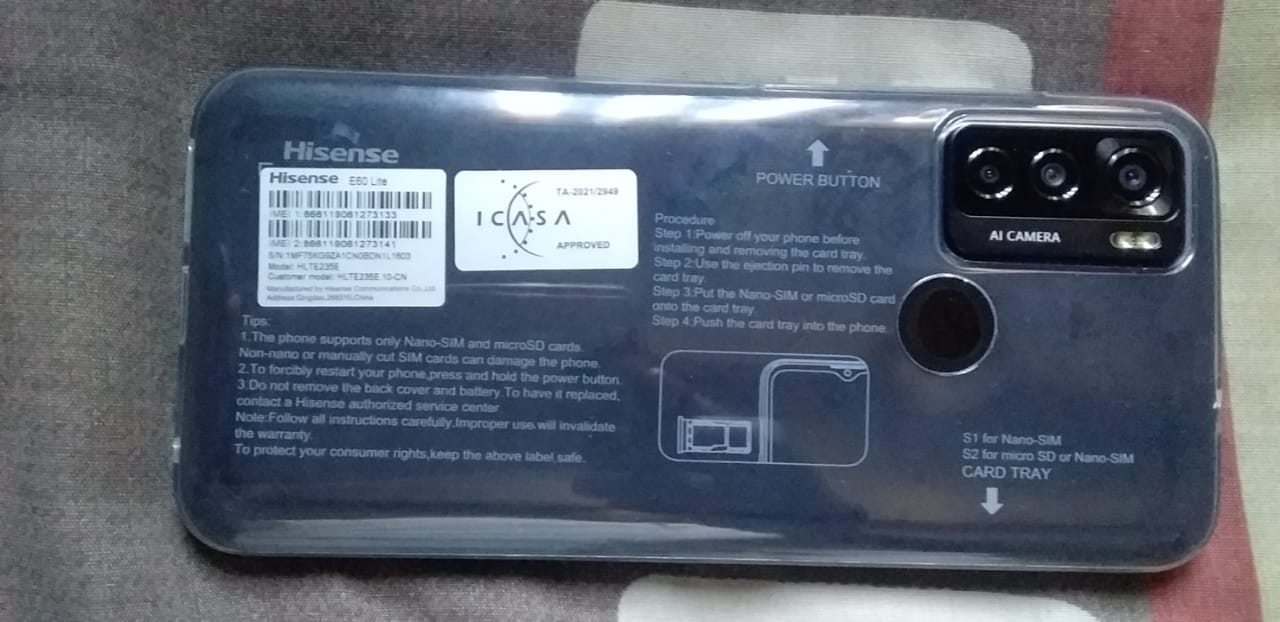 Hi Sense E60LITE. More details:Intention - For SalePrice - 1800.0Region - GautengCity - JohannesburgSuburb - Sandton