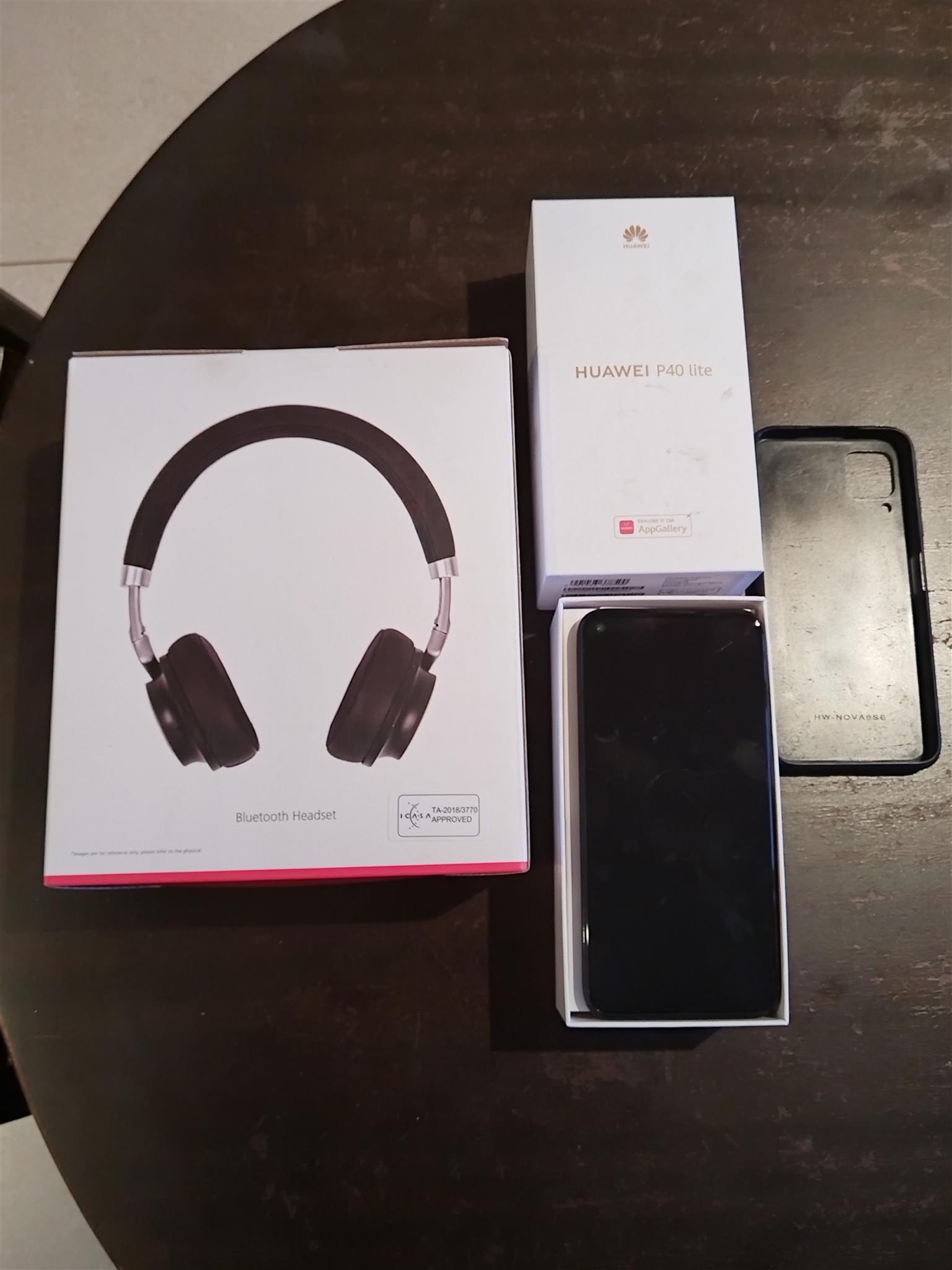 Hauwei P40 lite excellent condition missing charger with phone cover + Hauwei Bluetooth headset never been used no chance takers watsapp only please