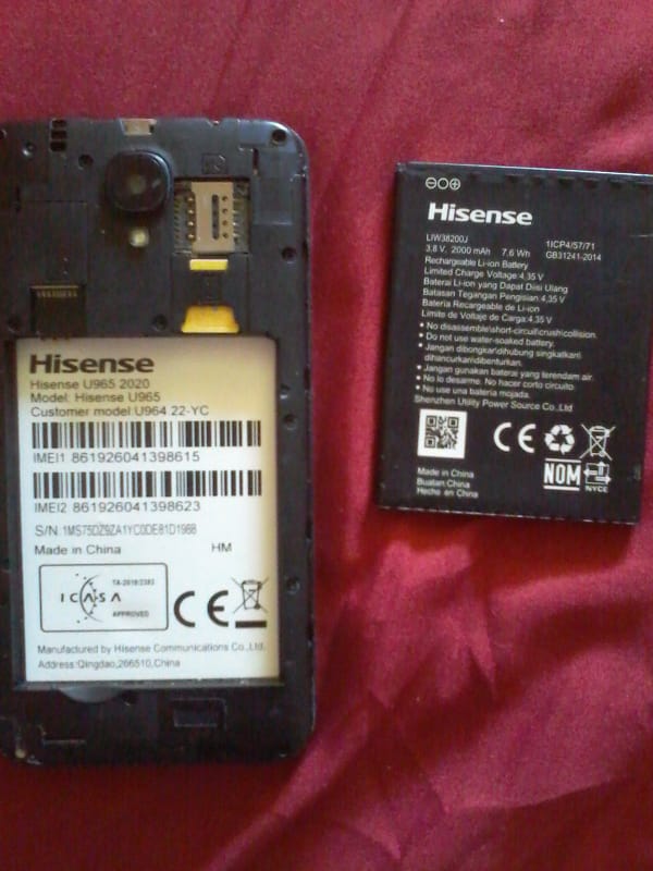 Hisence cellphone for sale. Works 100%. Battery life very good as I just bought new battery. Small crack but still works without problems. WhatsApp me 0782893169view more. Cash only. Price slightly negotiable.