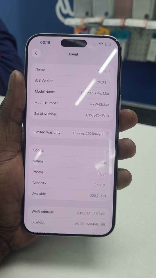 We offer you a 6months repair warranty Apple Iphone 16 Pro Max 256GB Color White Titanium Contact me Kagiso at If you are interested