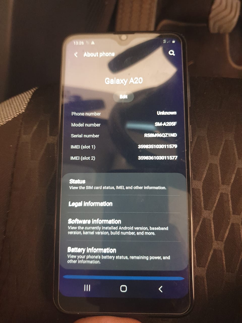 Samsung A20100% working....No Faults at all...Good condition..Price neg...City and Suburb - Lenasia Gauteng