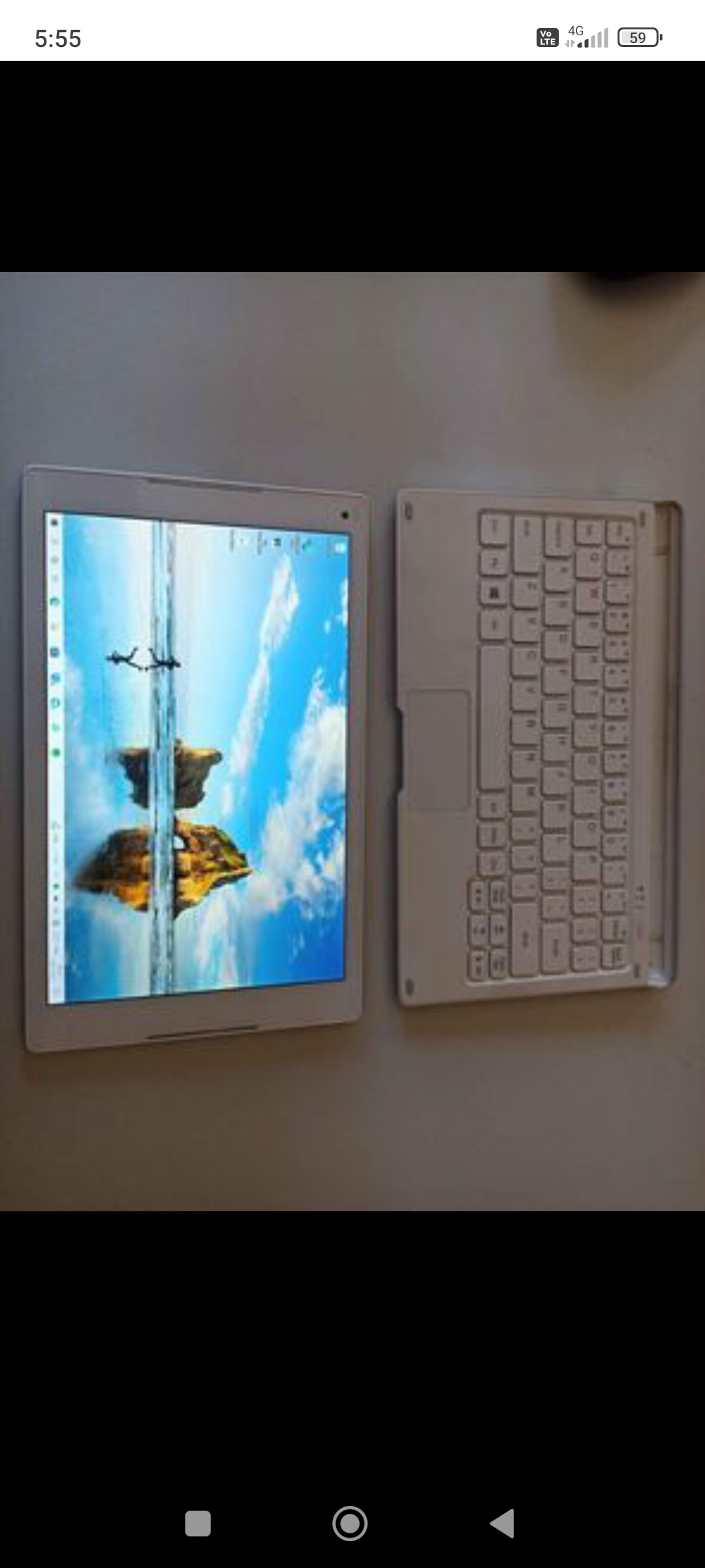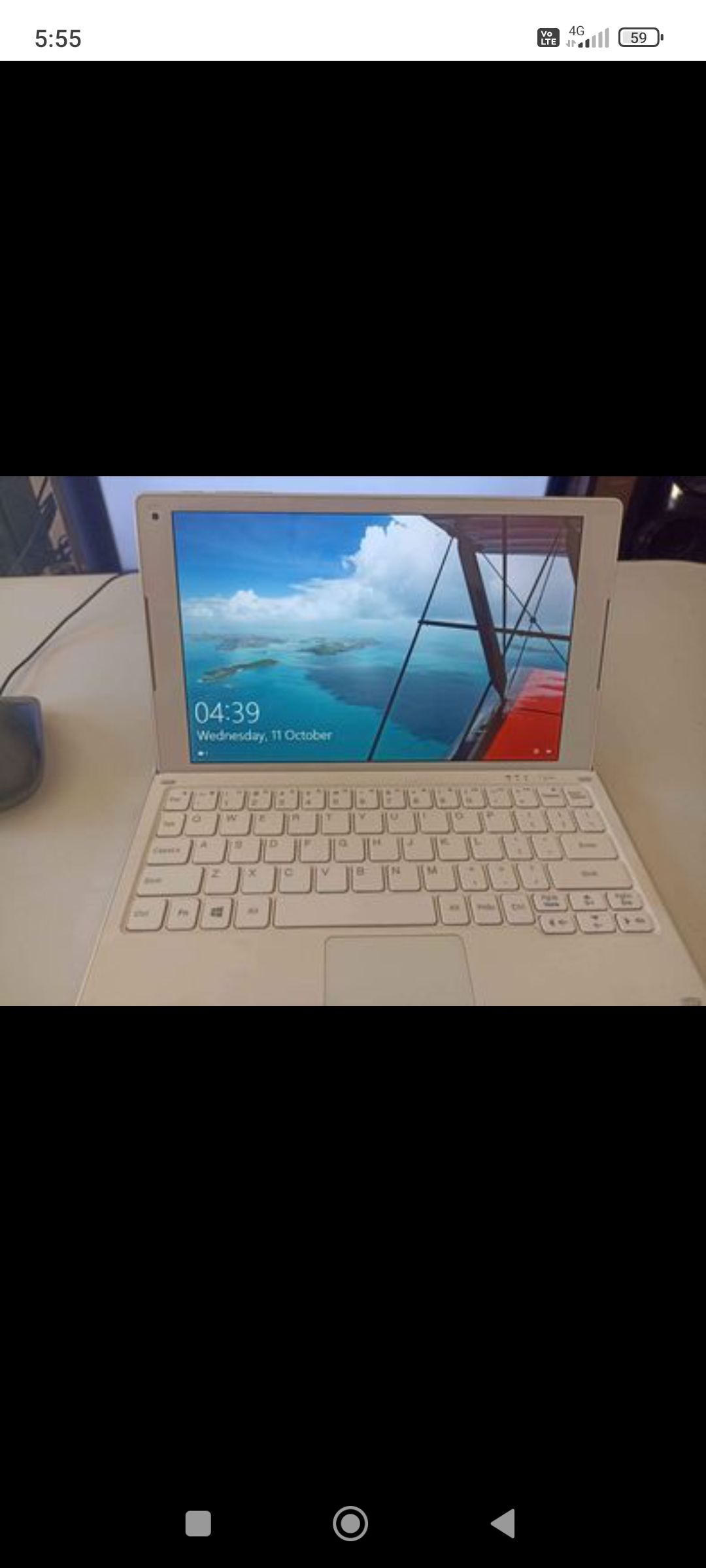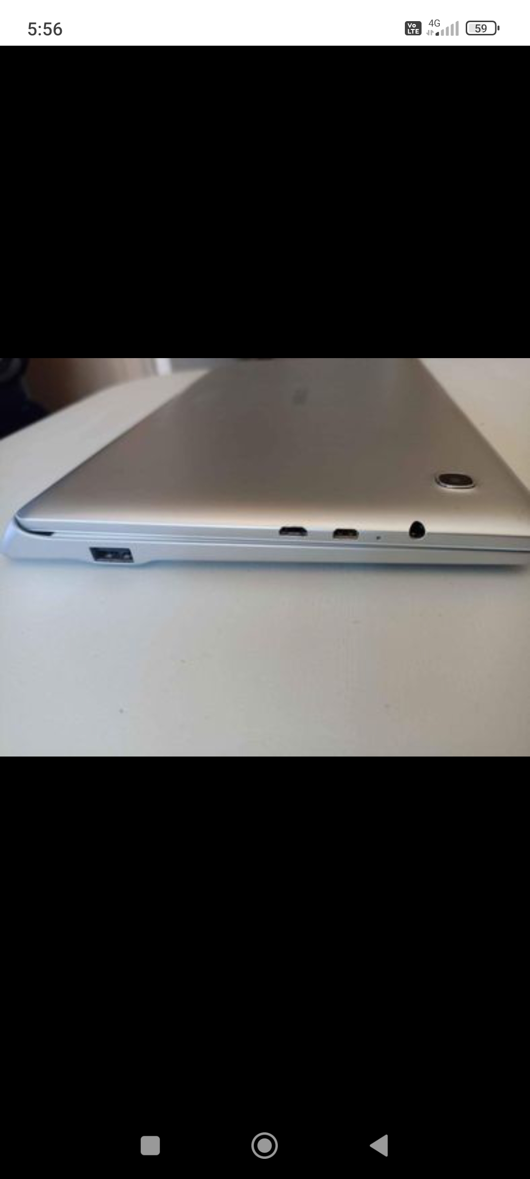 In good working condition.Uses normal phone charger adaptor and cord , I will give one with . The screen can be taken of of the keyboard and be used as a lovely tablet