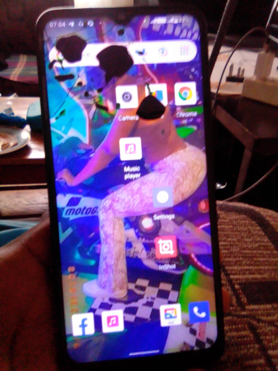 It has cracks on the screen n few ink dots but it's working just fine