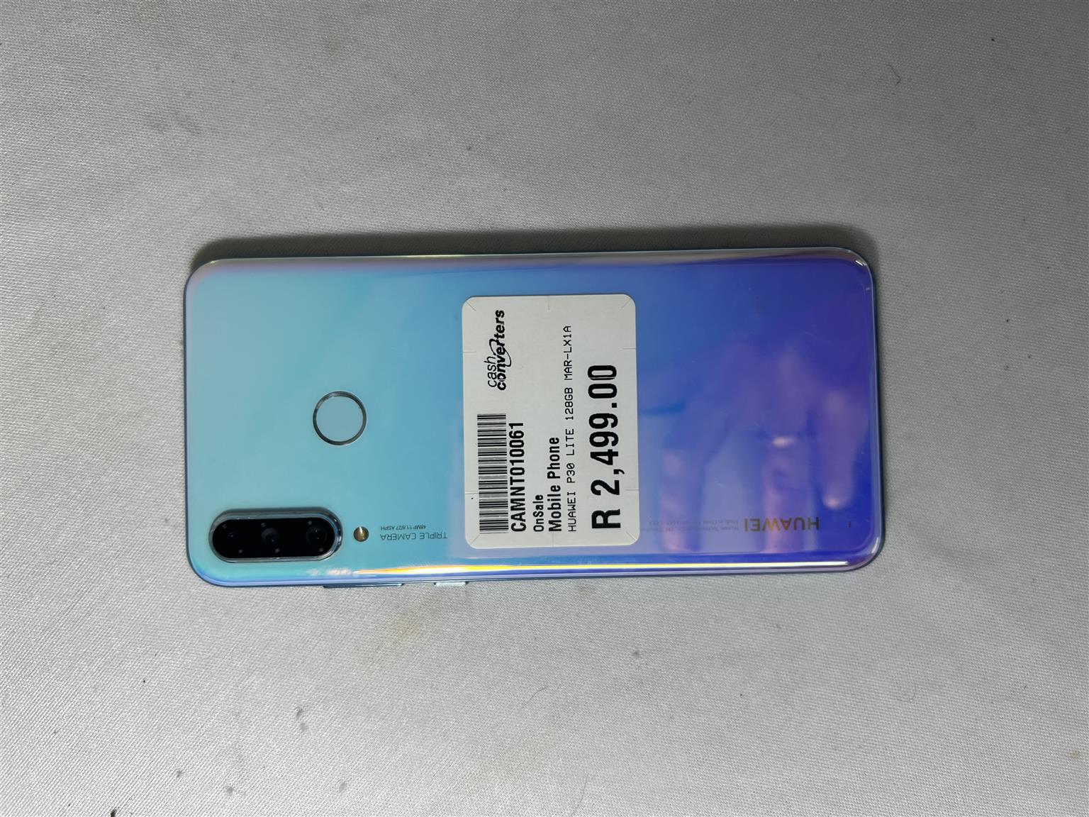Huawei Cellphone P30 Lite 128GB for sale R2499.00. In a good and working condition backed by a six month guarantee. 6GB ROM. Crystal in colour. Reference : CAMNT010061