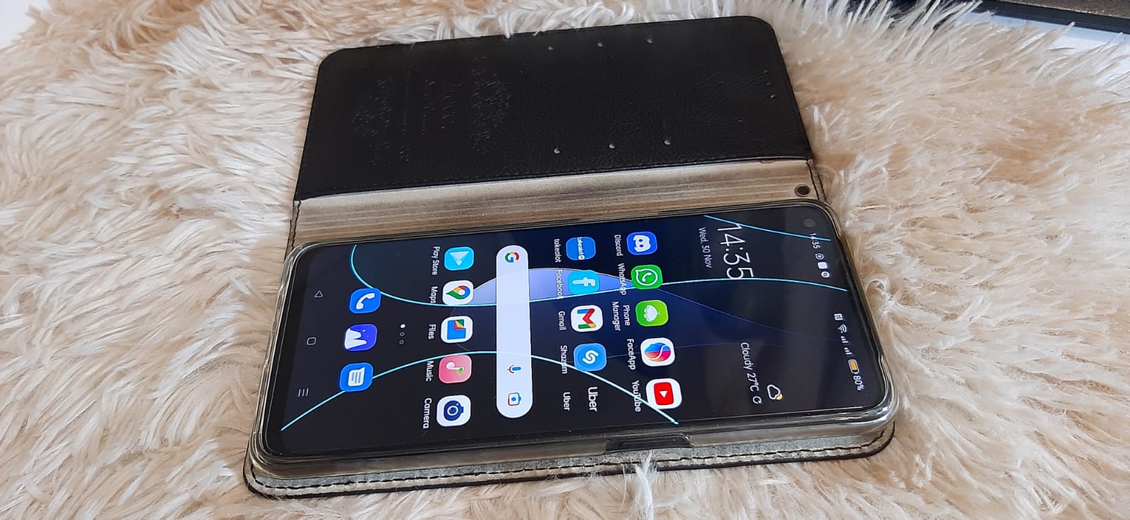 phone is in new condition, comes with flip book cover, charger not included