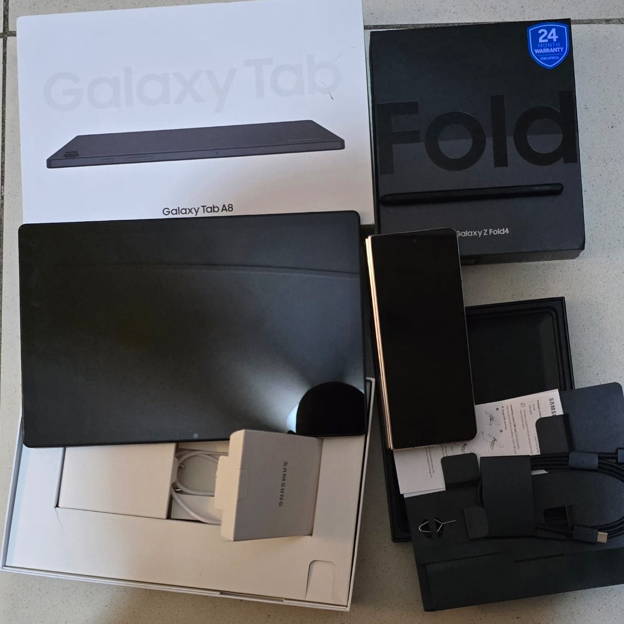 Samsung Galaxy Z Fold 4 with pen and Galaxy Tab A8. Both in very very good condition. No courieringYou collect, and we prefer cash.