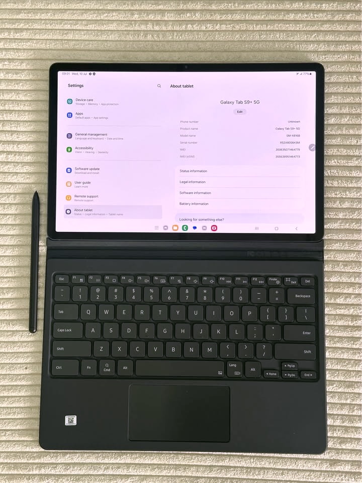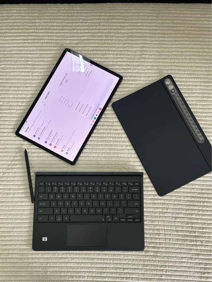 Selling my Samsung Galaxy S9 Plus Tablet, includes the official Samsung keyboard case and S Pen – perfect for productivity, note-taking, drawing, or entertainment on the go.