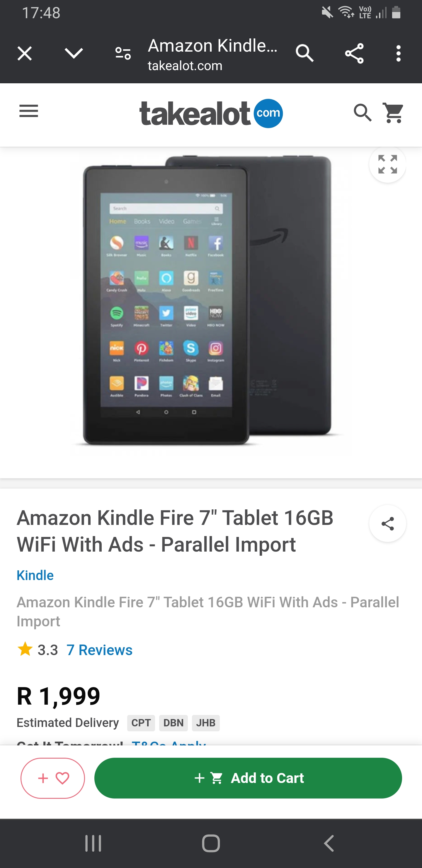 Amazon kindle fire 7 tablet. More details:Intention - For SalePrice - 900.0Region - GautengCity - Roodepoort