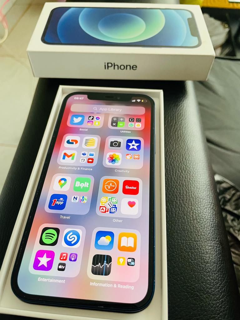 iPhone 12 64GB in a excellent working condition , no scratches or dents on it .. it has a box n a charger