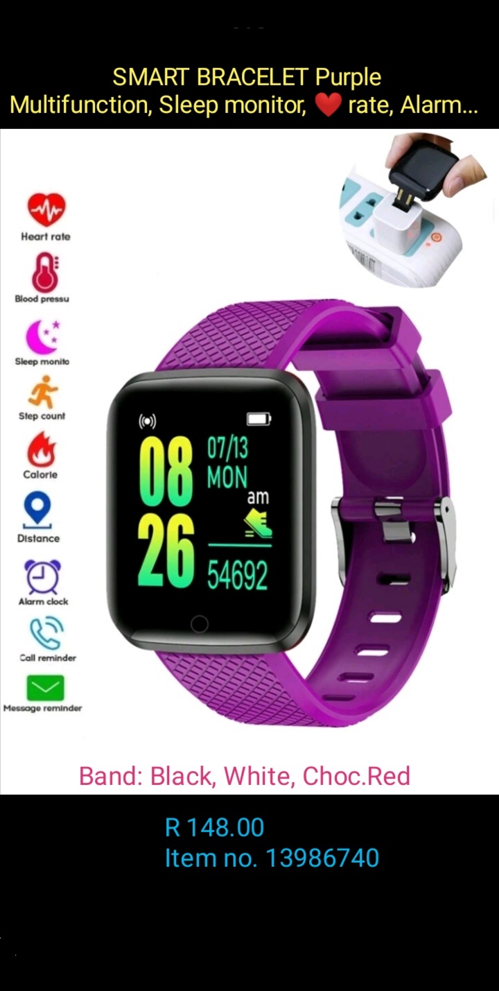 SMART BRACELETMulti FunctionSport & Health MonitoringContact:072 694 6100view more wa for further details
