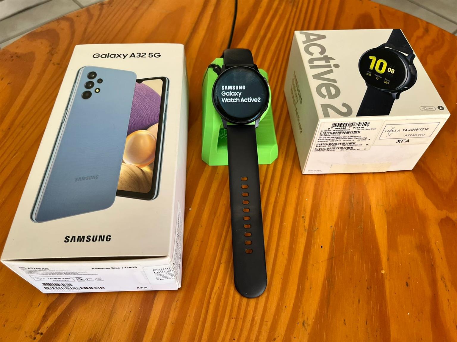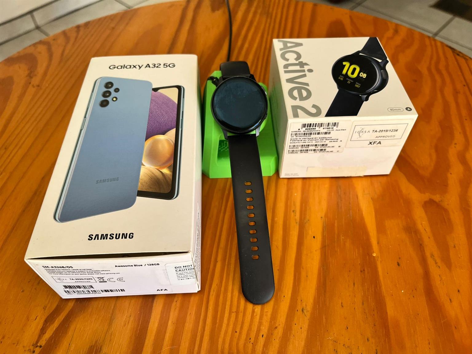 Galaxy Active Watch 2 for sale with Samsung Galaxy A32 5G phone. All with boxes has Heart and Health monitoring, advanced health tracking, GPS, Bluetooth and Wi-Fi. Comes with charger and stand. Galaxy phone screen is cracked but in excellent working order. Selling as a package. Price R2800 Negotiable. WhatsApp Billy.