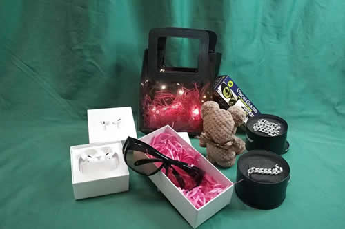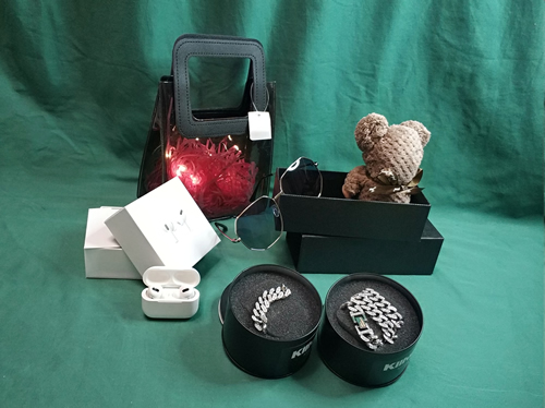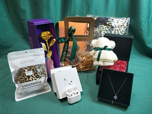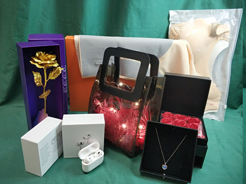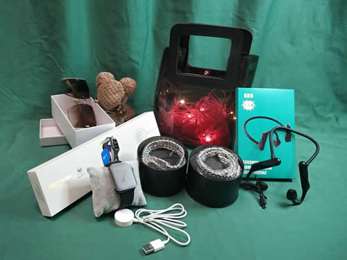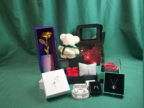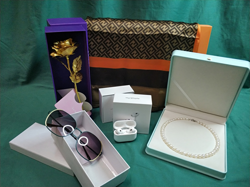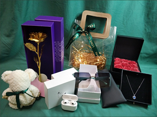 the gift package include 4 itens, jewelry, sunglass,wirless blutooth headset,gold rose,it is specilized for mothers day gift.