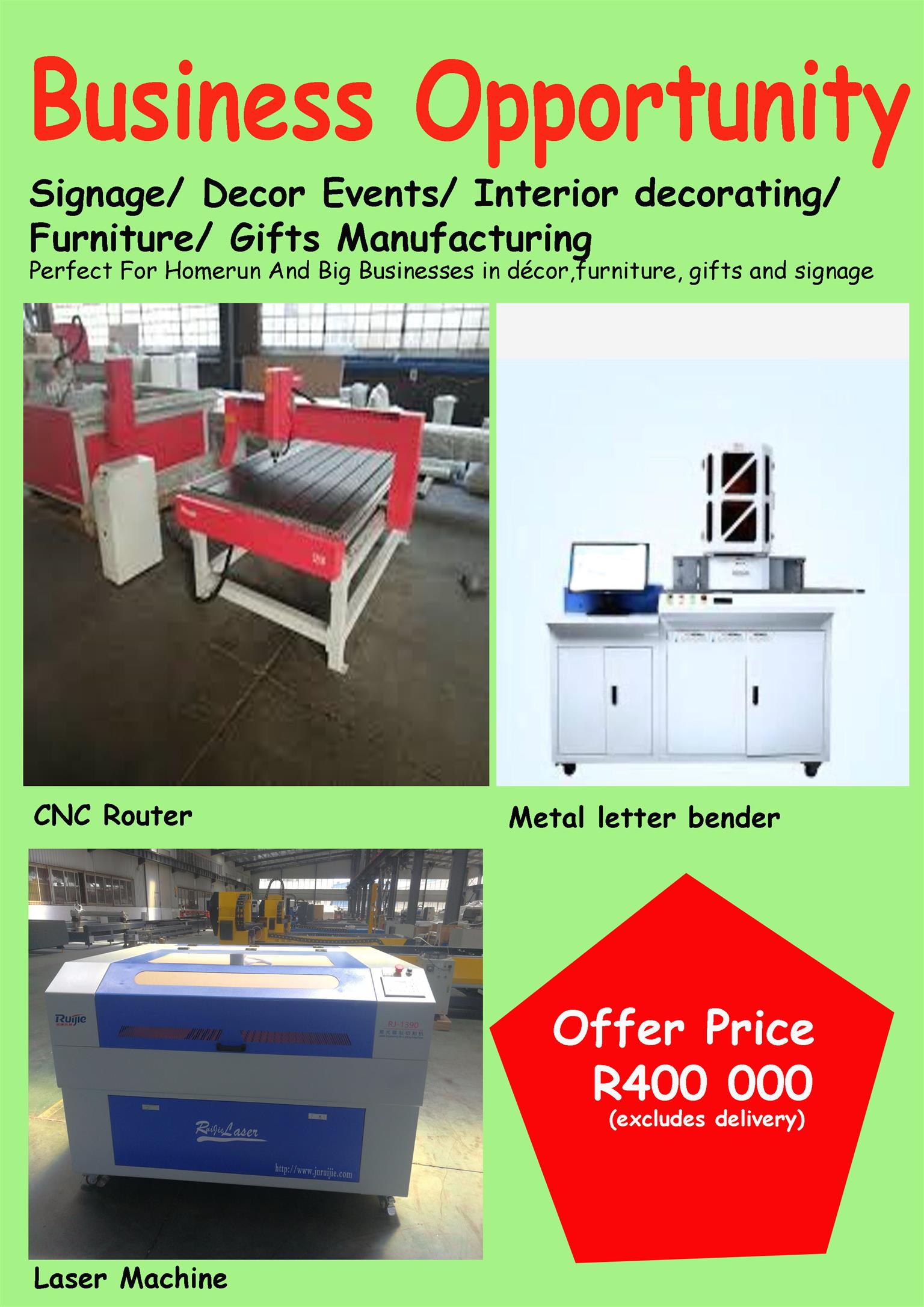 Signage/ Decor Events/ Interior decorating/ Furniture/ Gifts manufacturing. More details: