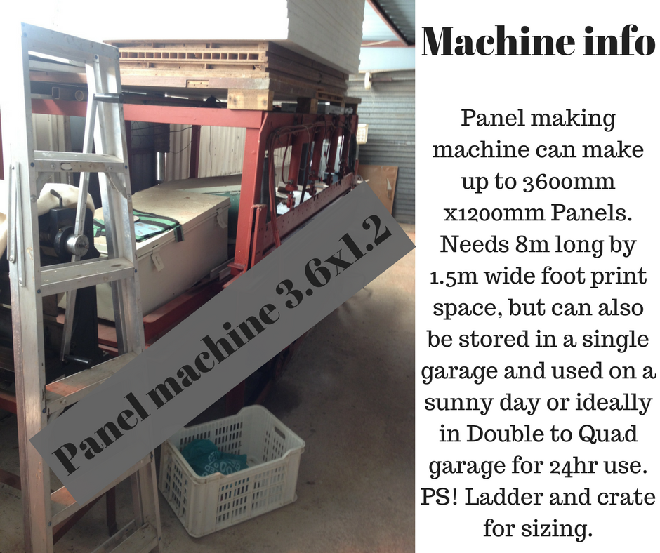 ON SPECIAL...make an offer at viewing for this Insulated panel and sip making machine, info and know how up for sale cheap as need the space in my garage. Super low low price valid only while I try find new storage space for the machine. So if you would like to learn how to make these and build almost anything that needs a wal or floor or roof panel that you can't buy anywhere else or custom made to exterior or interior material of your design choice or to fit your design structure ie teen or parent cottage to roof room or class room or holiday units contact me to view and see if this can work for you. Was selling For R180k now reduced at a give away price if you have DIY skills. Suit someone who has extra money to buy required power tools unless you already have them and some material for first unit. Custom farm built machine that can make 1.2m by up to 3,6M panels and brackets or tracks etc plus made from local materials. I have personally built with this and improved things from when I bought the machine and how the previous owner built panels. Not steel panels those you can buy as many people make them, but will be easy to build with them once you been trained on this system. You able to