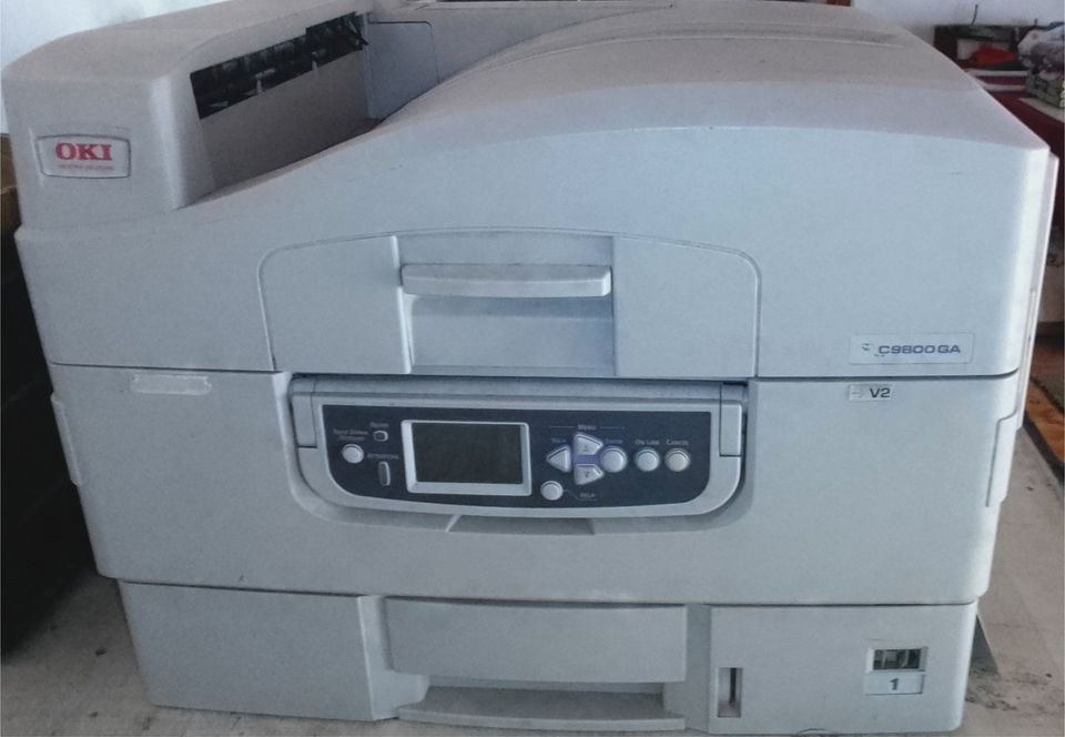 A3 CMYK Toner printer. Hard drive needs to be reset. Can be bought for spares. or repaired.