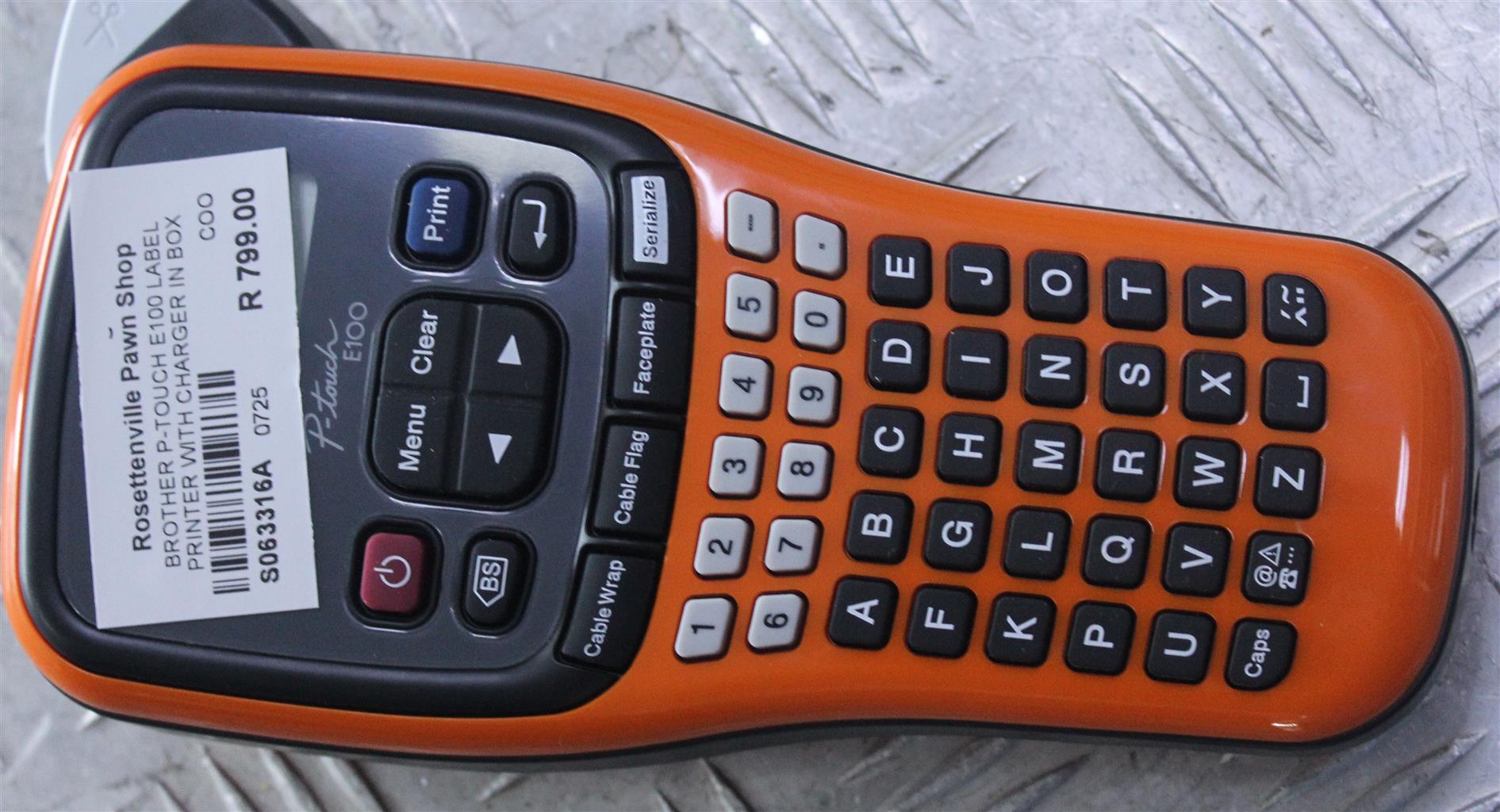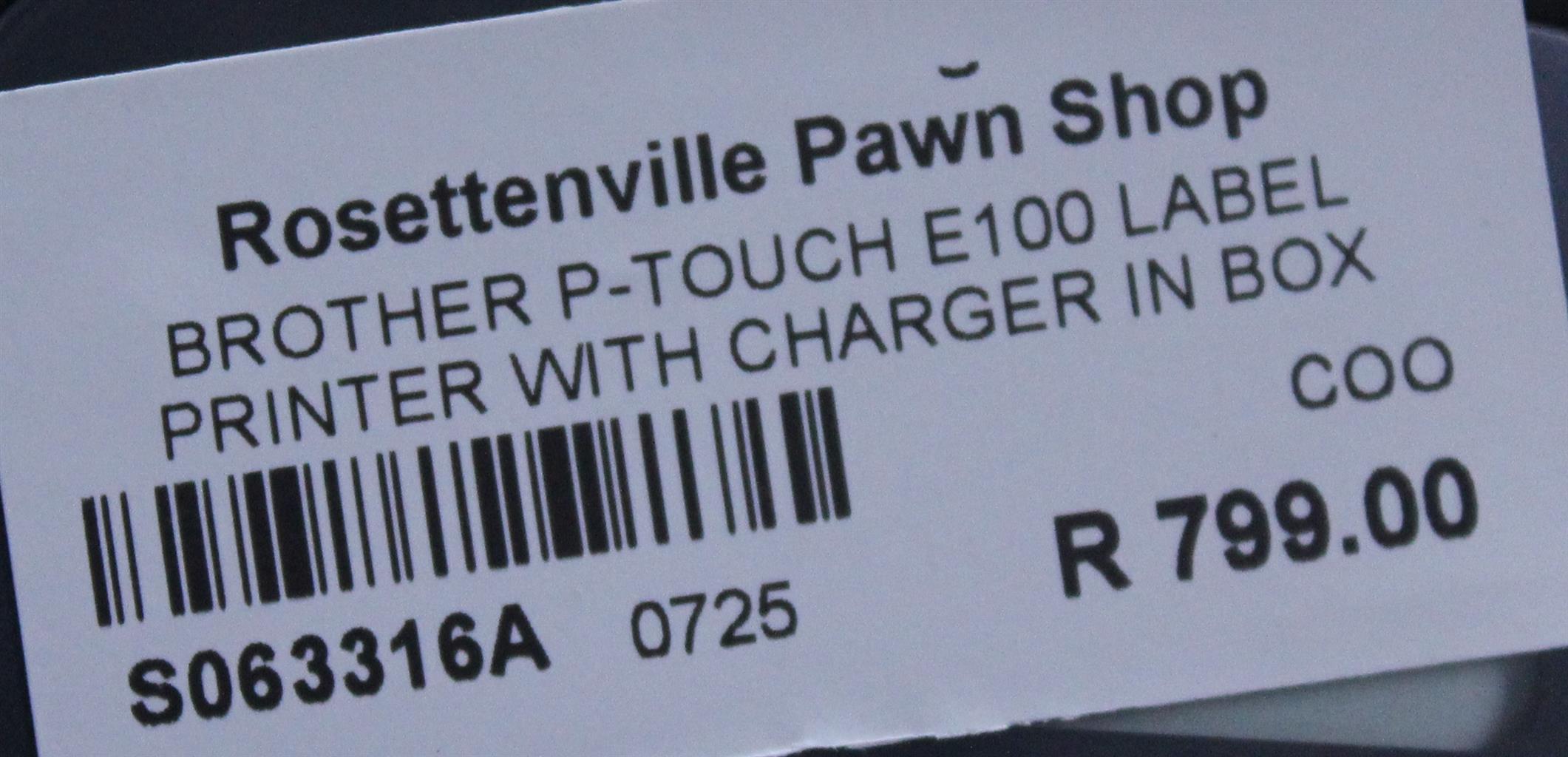 BROTHER P-TOUCH E100 LABEL PRINTER WITH CHARGER IN BOX