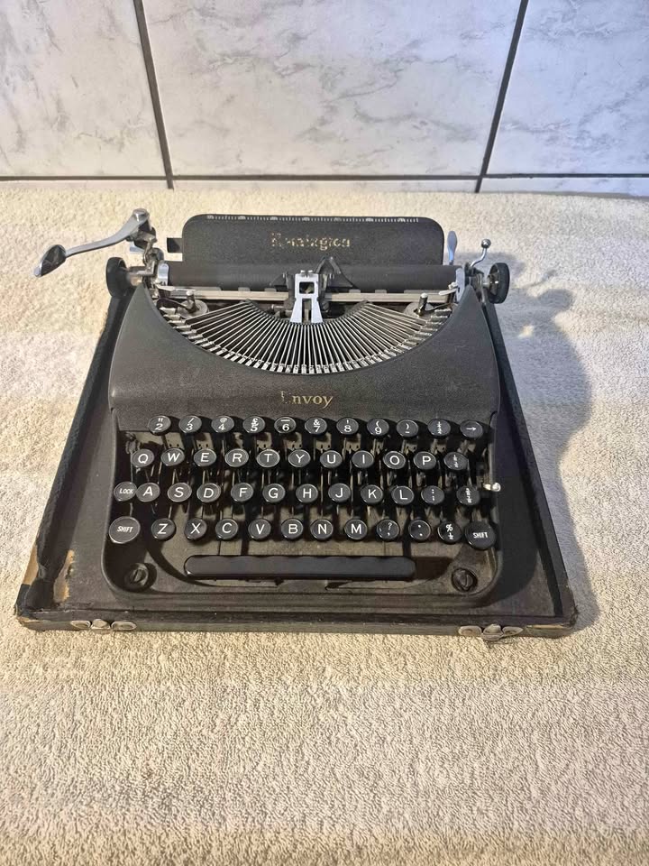 This particular model is the later 'Type 2' version, produced between September 1941 and April 1942, making it one of the last typewriters manufactured for civilian use before production ceased due to World War II. Key Information Model: Remington Envoy, Type 2 Era: Early 1940s Manufacturer: Remington Rand (in the USA) Features: It features a black finish, a QWERTY keyboard layout, a color ribbon selector, and a backspace function. It was considered a middle-line, portable option when new. Condition and Value: The value of a vintage typewriter heavily depends on its condition. Based on recent sales of similar working models, the value can range from approximately $150 to over $400 USD. The original carrying case is also an important factor in its collectibility and value.