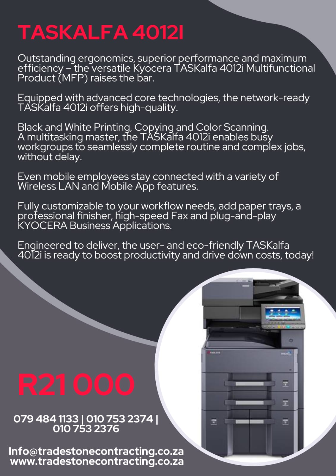 MULTI FUNCTIONAL COPIER MACHINE BLACK AND WHITE 40PPM