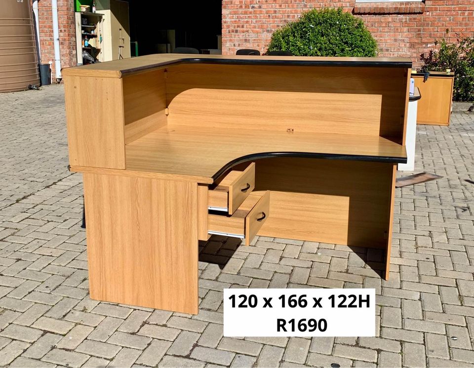 GOOD QUALITY OFFICE RECEPTION COUNTER DESK WITH DRAWERS. More details:Intention - For SalePrice - 1690Region - Eastern CapeCity - Ibhayi