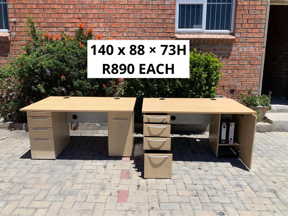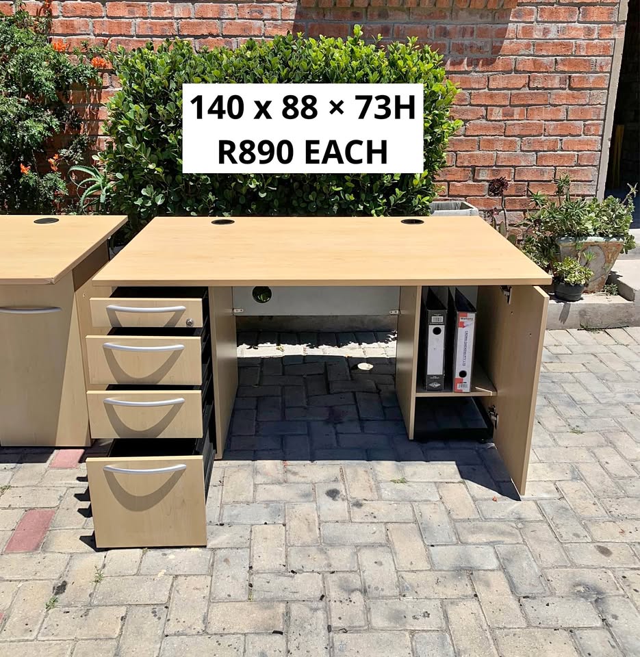 OFFICE DESKS WITH DRAWERS & STORAGE CABINET R890 EACH. More details: