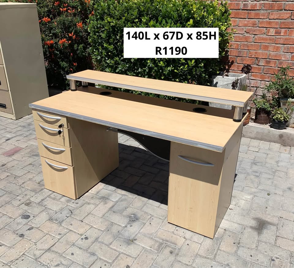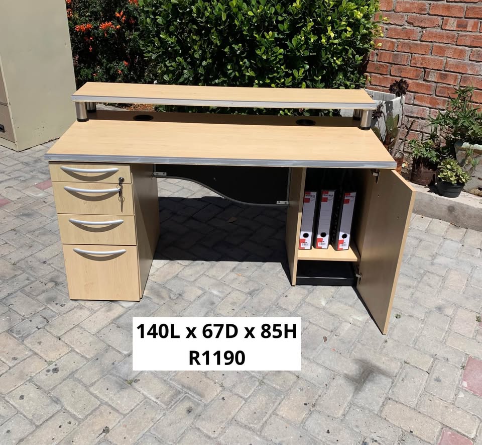 SMALL OFFICE RECEPTION DESK WITH DRAWERS AND STORAGE CABINET. More details: