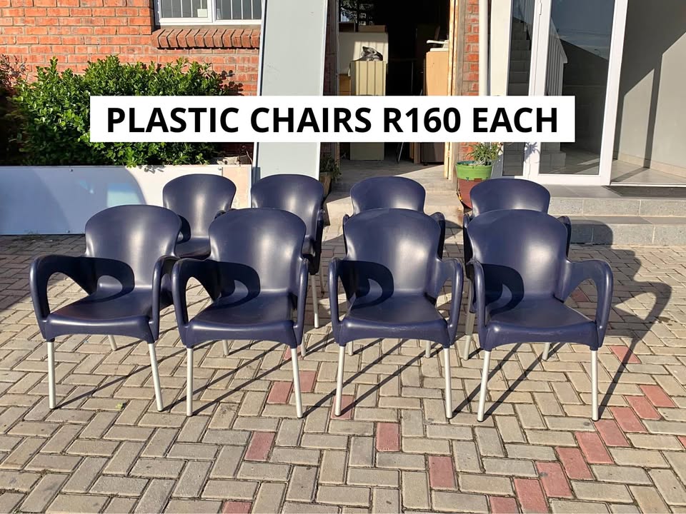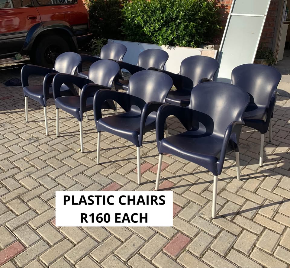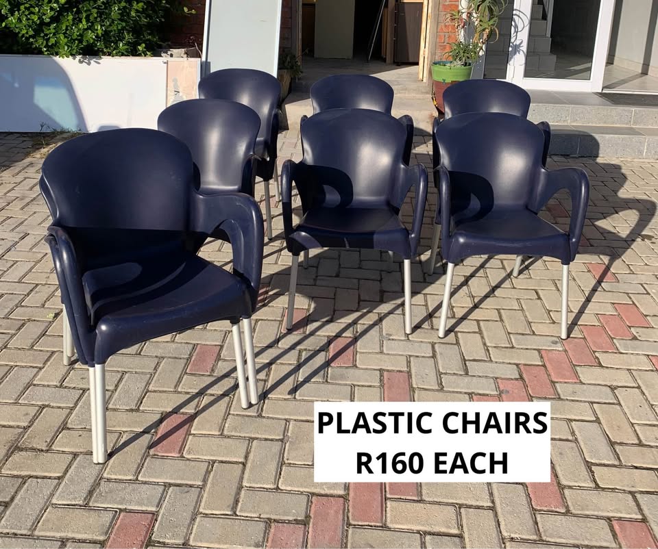STACKABLE PLASTIC CHAIRS R160 EACH. More details:Intention - For SalePrice - 160Region - Eastern CapeCity - Ibhayi