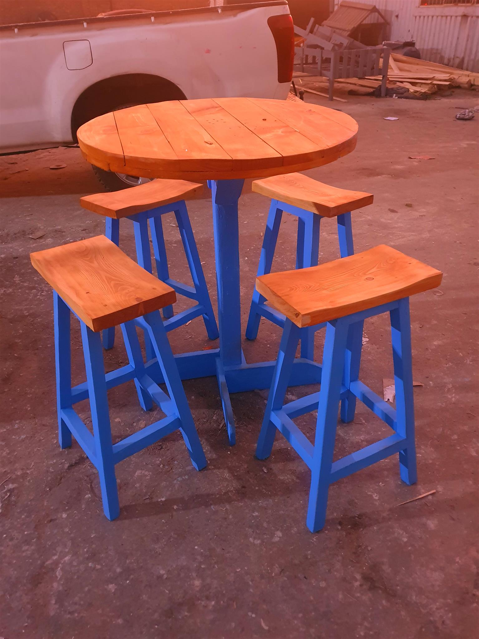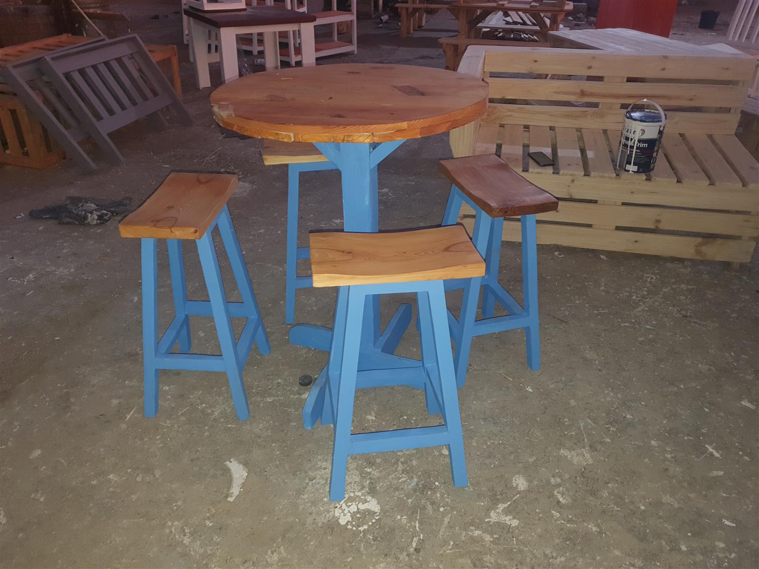 I'm selling 4 bar chairs and a round table. We also makes on orders.