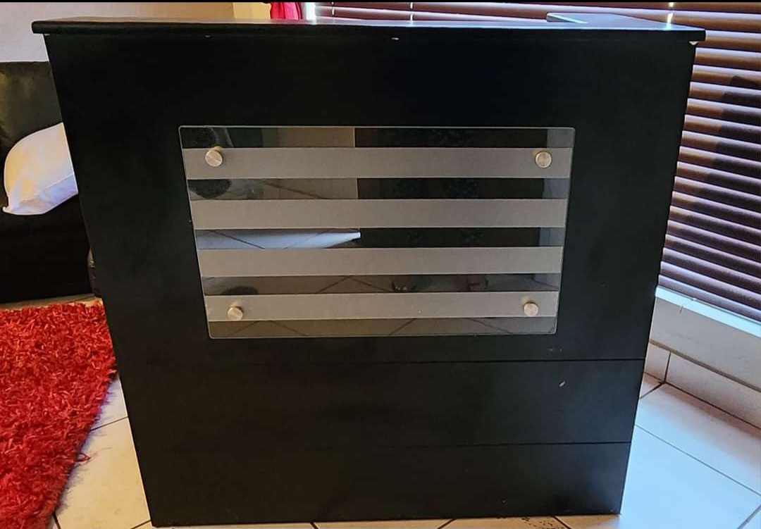 Solid wood reception desk with glass front, excellent condition. 1020 x 1010 x 1500. R1950 neg. 078 460 0202view more