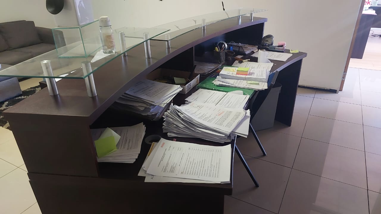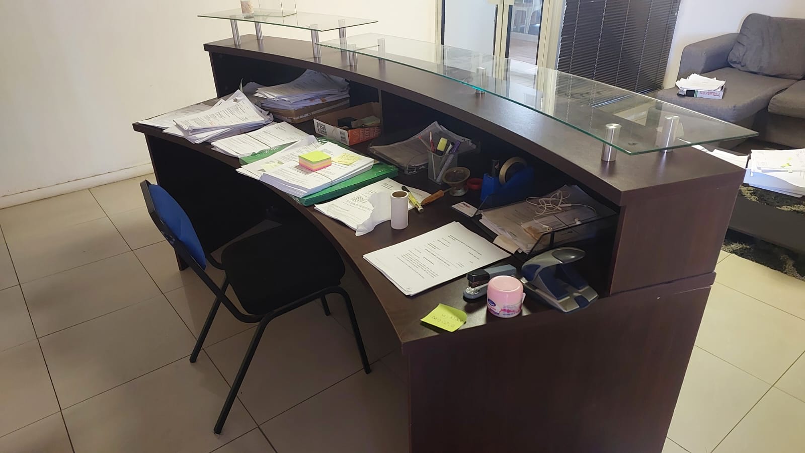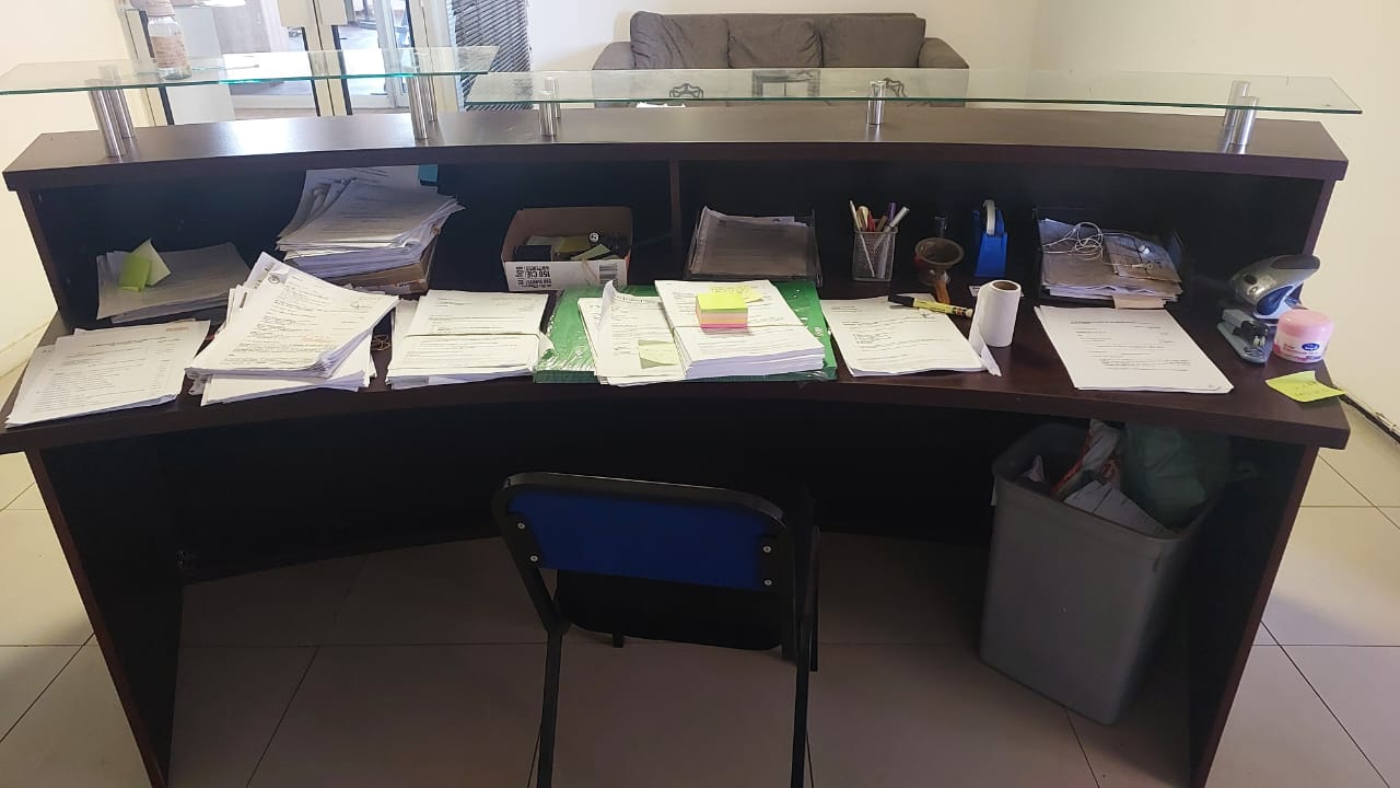 Large Reception desk for sale. Costs R15 000.00. Selling for R3000.00