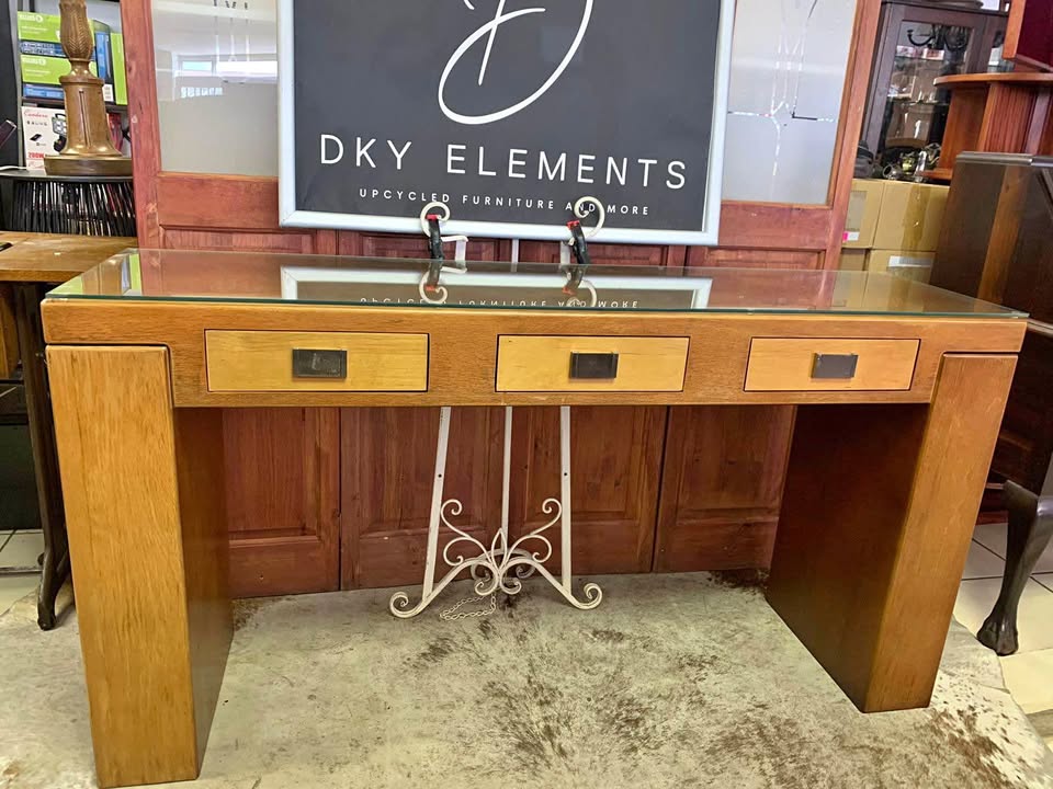 Console Table/ Server Beautiful two tone wood finish 3 Drawers Glass top to prevent scratches Measurements: 1500 x 400 and height 790 Available from our store DKY Elements. Address: 167 Republic Road, Fontainebleau. We are open from Monday to Saturday from 9h00 to 17h00.