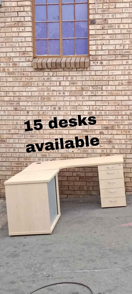L shaped office desks R1800 each. 15 units available. SHS Office Furniture. For all your new, custom made and second hand furniture. Situated at 62 Rabie Street. Fontainbleau Randburg. . Open weekdays 8-5 Saturdays and public holidays 8-2. Shs can custom make call center desks and cabinets too.