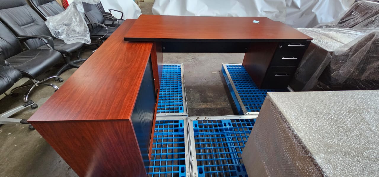 L SHAPE Executive Desk with Pedastel and Credenza L 250 W71 H76 R3750