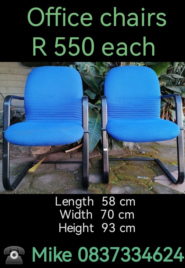 Office chairs. More details:Intention - For SalePrice - 550.0Region - KwaZulu-NatalCity - DurbanSuburb - Bluff