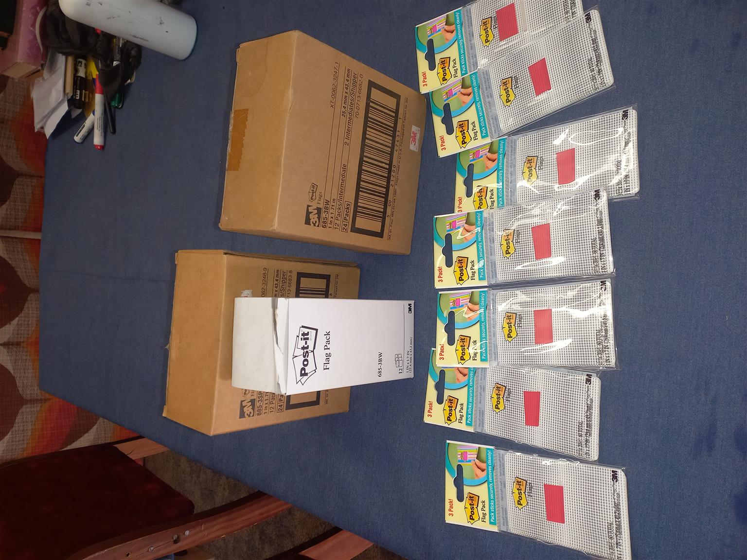Box of 720 Post-it Flags (12 packs of 60 per box) @ R25per box. Used as book markers or highlighting information. I have over 100 of these boxes. To collect in Seaview Durban.
