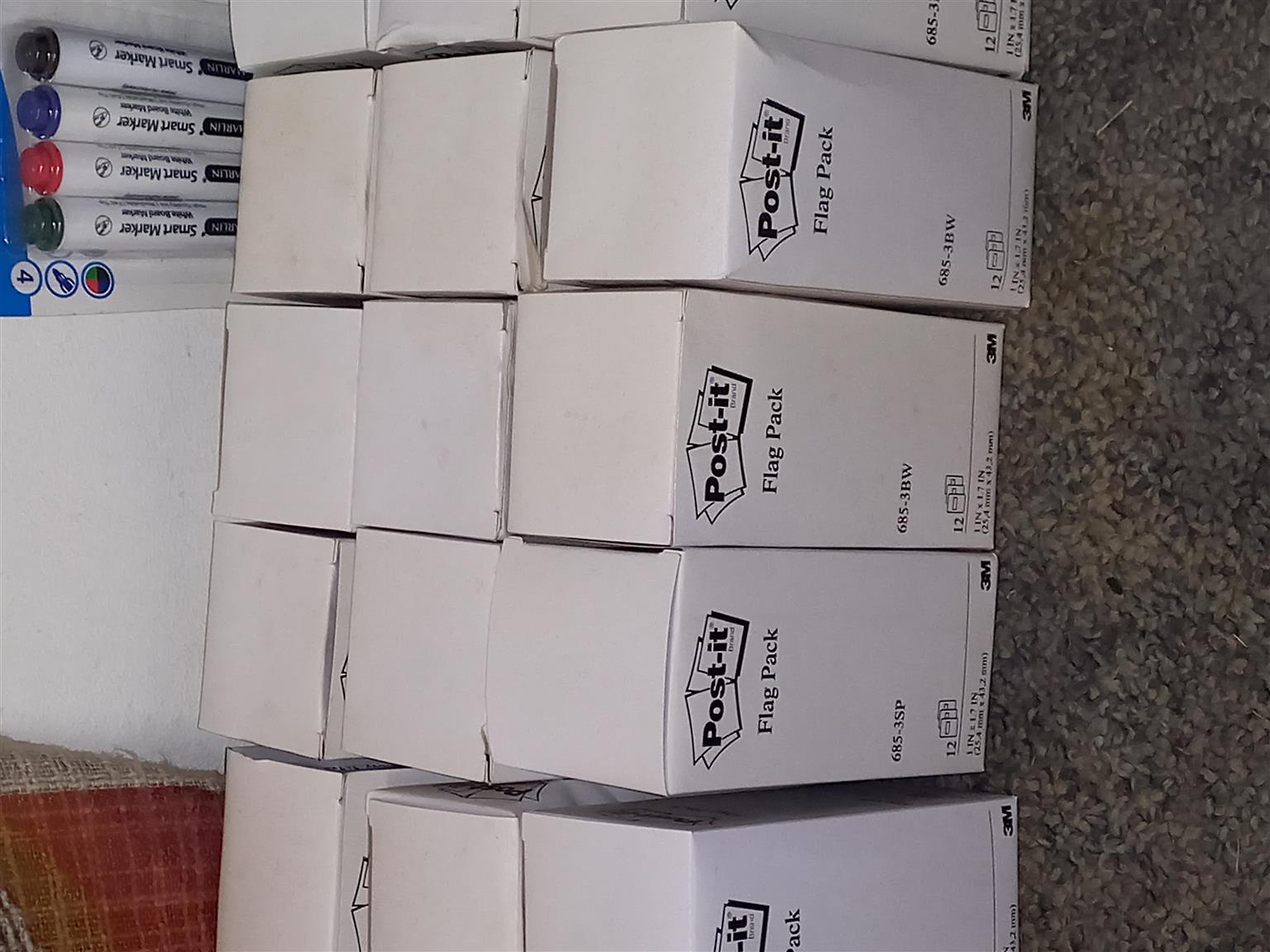 Post-it Flags - 12 oacks of 60 = 720 per box. I have over 100 boxes at R20 per box
