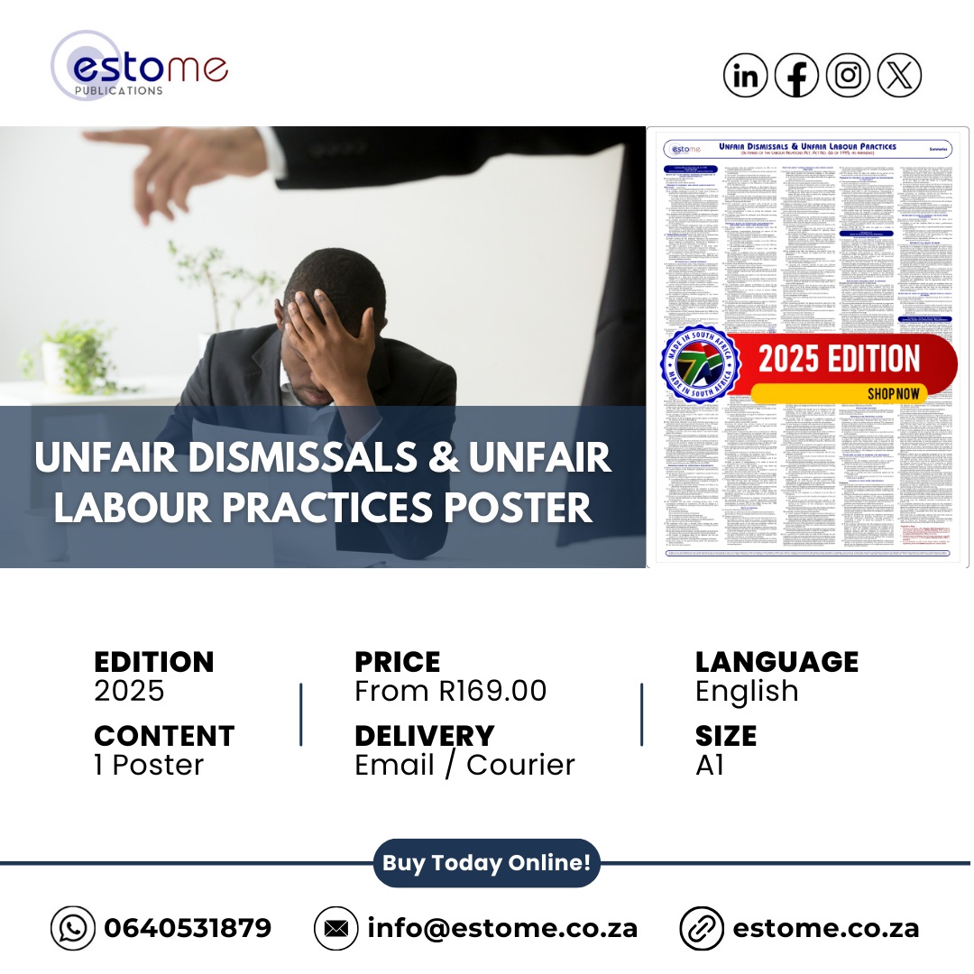 Order your Unfair Dismissals and Unfair Labour Practices Poster now! Shop Now: https://estome.co.za/product/unfair-dismissals/