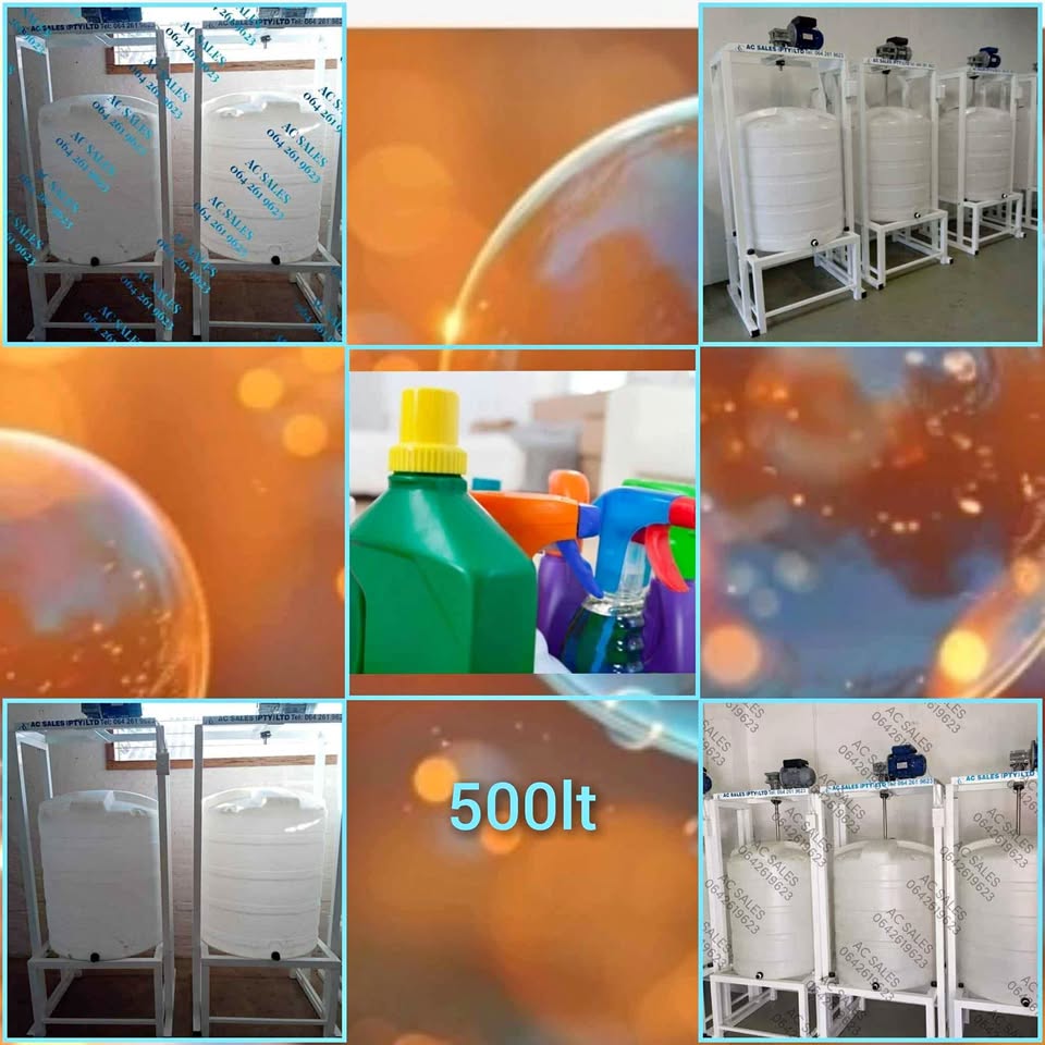 Please call/WhatsApp for more information. 500 liter detergent mixing machine, industrial unit, stainless steel shaft and mixing blades, includes formulation to manufacture 40 detergent products with details of suppliers for raw materials, or can be used for any other liquid products, , locally manufactured, countrywide and export delivery, full backup. Free Formulation book to manufacture over 40 quality detergents, household cleaners, car care products, degreaser and more, self study manual, NO TRAINING REQUIRED BLEACH ECONOMY DISHWASHING LIQUID SUPER DISWASHING LIQUID HANDY CREAM RED BUBBLE BATH BLUE BUBBLE BATH REGULAR FABRIC SOFTNER APPLE FABRIC SOFTNER WINDOW CLEANER TOILET AND BATHROOM CLEANER TOILET BOWL CLEANER CARPET SHAMPOO ALL PURPOSE CLEANER FAMILY SHAMPOO CREAMY SHAMPOO PINE DISINFECTANT LEMON DISINFECTANT CAR SHAMPOO RED LIQUID SOFT SOAP BLUE LIQUID SOFT SOAP ENGINE CLEANER PET SHAMPOO OVEN CLEANER BATH SALTS CARPET FRESHENER AIR FRESHENER ALTERNATIVE HANDY CREAM AUTOMATIC DISHWASH POWDER DRAIN CLEANER DRY FOAM CLEANER DRY FOAM CARPET CLEANER ENGINE DEGREASER HIGH FOAM WASHING POWDER LIQUID LAUNDRY DETERGENT LOW FOAM WASHING POWDER MULTI PURPOSE CLEANER/DEGREASER PINE GEL PINE GEL SANITISER SCOURING POWDER TYRE AND DASH SHINE WATERLESS HAND CLEANER