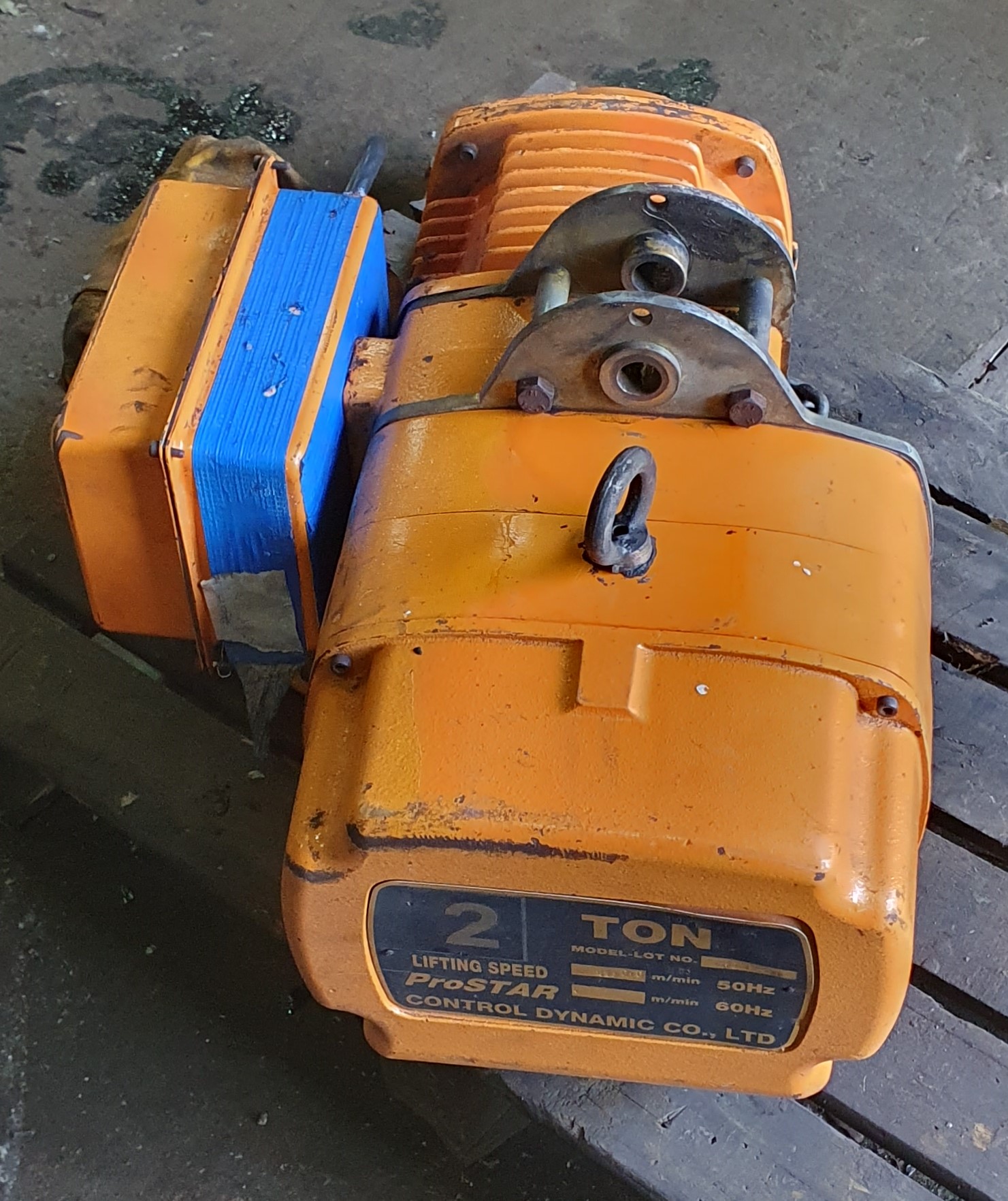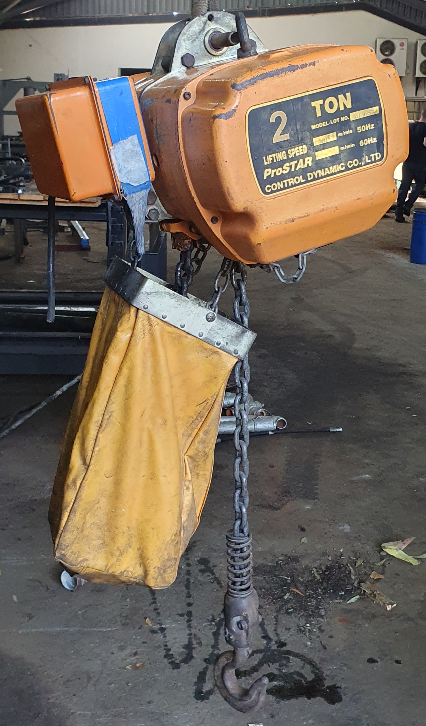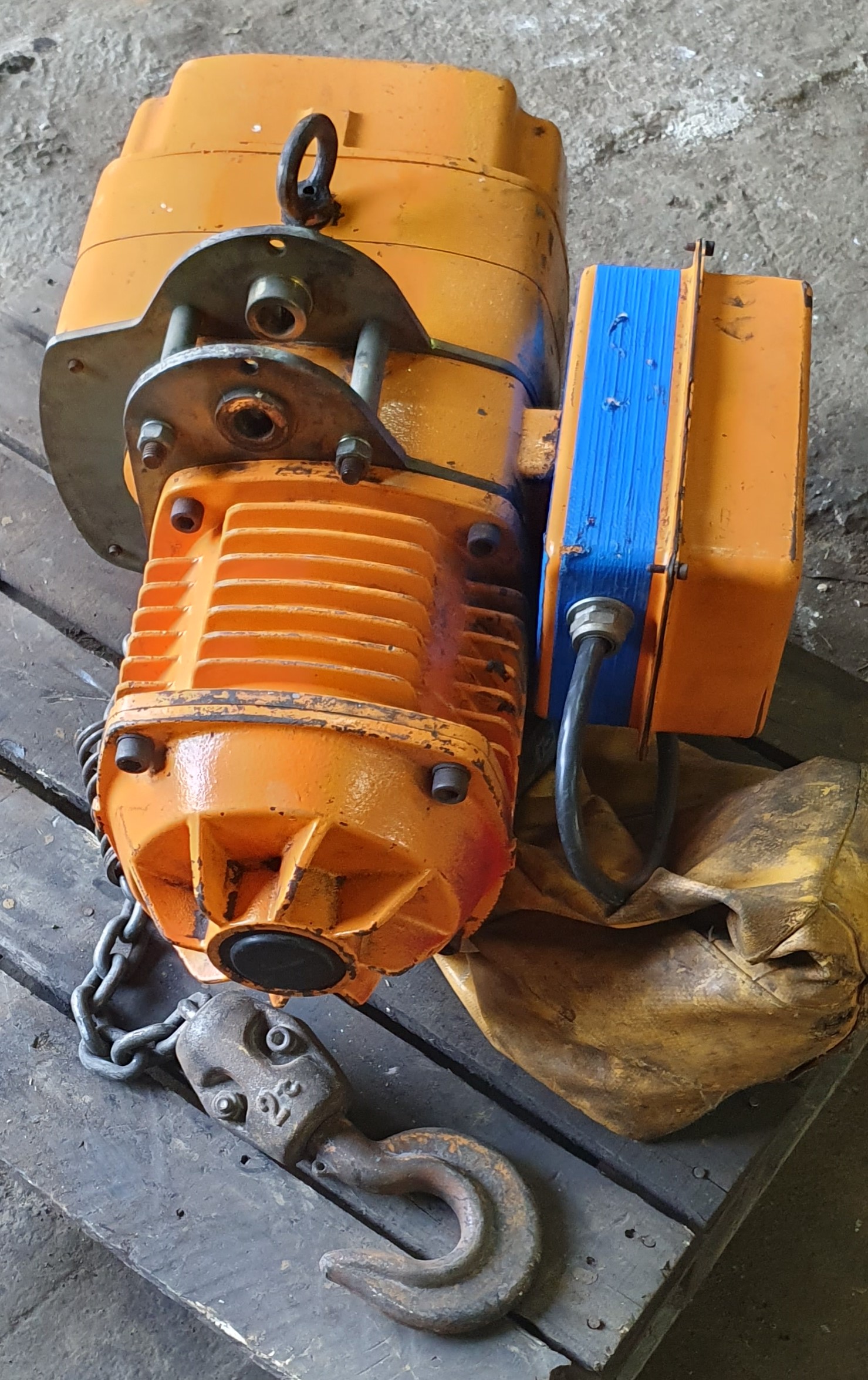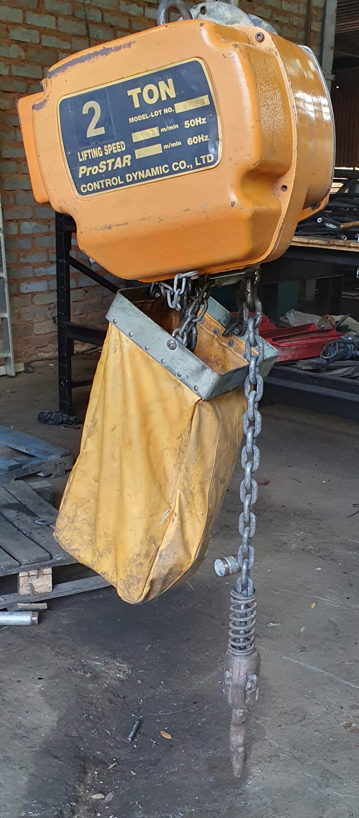 This 2 ton 2 speed single chain hoist was in good working order when it was removed down from the gantry. Since been in storage it has been damaged, the crane itself is fine, but the hand control unit is missing.