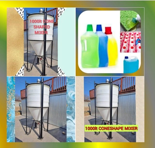 Cone shape detergent mixing machine, very good condition with speed control, come shape for easier draining of products, TEL , free formulation book for over 40 products