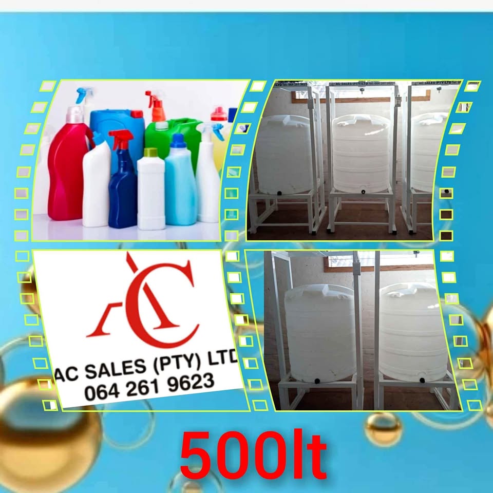 Please call/WhatsApp for more information. 500 liter detergent mixing machine, industrial unit, stainless steel shaft and mixing blades, includes formulation to manufacture 40 detergent products with details of suppliers for raw materials, or can be used for any other liquid products, , locally manufactured, countrywide and export delivery, full backup. Free Formulation book to manufacture over 40 quality detergents, household cleaners, car care products, degreaser and more, self study manual, NO TRAINING REQUIRED BLEACH ECONOMY DISHWASHING LIQUID SUPER DISWASHING LIQUID HANDY CREAM RED BUBBLE BATH BLUE BUBBLE BATH REGULAR FABRIC SOFTNER APPLE FABRIC SOFTNER WINDOW CLEANER TOILET AND BATHROOM CLEANER TOILET BOWL CLEANER CARPET SHAMPOO ALL PURPOSE CLEANER FAMILY SHAMPOO CREAMY SHAMPOO PINE DISINFECTANT LEMON DISINFECTANT CAR SHAMPOO RED LIQUID SOFT SOAP BLUE LIQUID SOFT SOAP ENGINE CLEANER PET SHAMPOO OVEN CLEANER BATH SALTS CARPET FRESHENER AIR FRESHENER ALTERNATIVE HANDY CREAM AUTOMATIC DISHWASH POWDER DRAIN CLEANER DRY FOAM CLEANER DRY FOAM CARPET CLEANER ENGINE DEGREASER HIGH FOAM WASHING POWDER LIQUID LAUNDRY DETERGENT LOW FOAM WASHING POWDER MULTI PURPOSE CLEANER/DEGREASER PINE GEL PINE GEL SANITISER SCOURING POWDER TYRE AND DASH SHINE WATERLESS HAND CLEANER