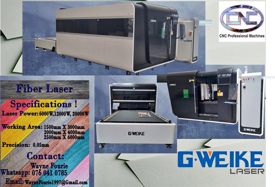 Are you looking to improve your production with speed and precision? G-Weike's Fully enclosed fiber laser cutting machine will be able to do the job right These brand new machines will bring the professional into your workshop with precision and quality!! Contact Wayne Fourie for more information and a free quote.