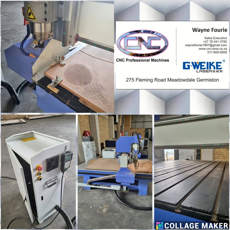 Get your creativity running wild with our CNC router, using any design program to make your ideas into a reality. Clamp table 1300mm x 1800mm working area. Cutting, engraving and Moulding with this beautiful machine. Contact today. Wayne Fourie.
