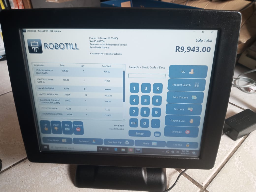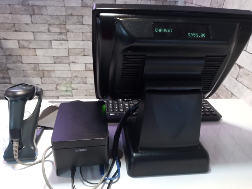 Point of sale hardware and software, Slip printer, meat scales, Barcode label printer, Hand held scanners, Datalogic Box scanners, Cash drawers, Finger prints readers