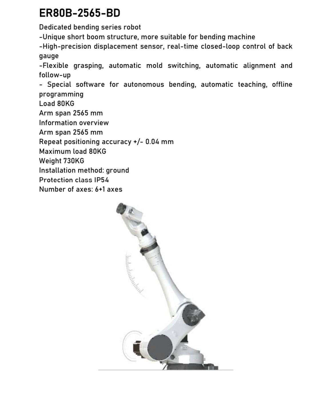 1-Type: CHD-PB-11032 DELEM DA53T 4 +1 Axes + ER80B-2565-BD 6 axis Robot (Ground Rail as option )