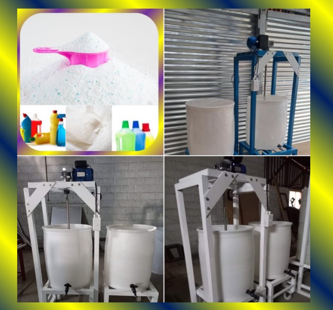 150 liter detergent mixing machine with removable base and tank, industrial unit, stainless steel shaft and mixing blades, includes formulation to manufacture 40 detergent products with details of suppliers for raw materials, or can be used for any other liquid products, , locally manufactured, countrywide and export delivery, full backup.