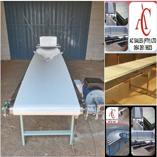 Conveyors Belt conveyors, incline or decline option, widths and thicknesses. We manufacture anything from food grade belt to 10mm thick rubber belts. Bodies of the machines designed according to specification and applications. Manufactured in mild steel and hot dipped galvanized, or from stainless in steel in various grades including food grade 316. Units available in 220 volts or 380 volt systems, with or without speed control units. We also rebuilt existing conveyor systems. Please call/WhatsApp
