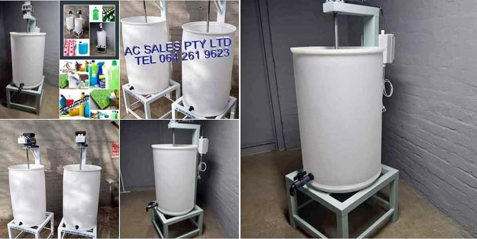 Please call/WhatsApp for more information. 200 liter detergent mixing machine, industrial unit, stainless steel shaft and mixing blades, includes formulation to manufacture 40 detergent products with details of suppliers for raw materials, or can be used for any other liquid products, , locally manufactured, countrywide and export delivery, full backup. Free Formulation book to manufacture over 40 quality detergents, household cleaners, car care products, degreaser and more, self study manual, NO TRAINING REQUIRED BLEACH ECONOMY DISHWASHING LIQUID SUPER DISWASHING LIQUID HANDY CREAM RED BUBBLE BATH BLUE BUBBLE BATH REGULAR FABRIC SOFTNER APPLE FABRIC SOFTNER WINDOW CLEANER TOILET AND BATHROOM CLEANER TOILET BOWL CLEANER CARPET SHAMPOO ALL PURPOSE CLEANER FAMILY SHAMPOO CREAMY SHAMPOO PINE DISINFECTANT LEMON DISINFECTANT CAR SHAMPOO RED LIQUID SOFT SOAP BLUE LIQUID SOFT SOAP ENGINE CLEANER PET SHAMPOO OVEN CLEANER BATH SALTS CARPET FRESHENER AIR FRESHENER ALTERNATIVE HANDY CREAM AUTOMATIC DISHWASH POWDER DRAIN CLEANER DRY FOAM CLEANER DRY FOAM CARPET CLEANER ENGINE DEGREASER HIGH FOAM WASHING POWDER LIQUID LAUNDRY DETERGENT LOW FOAM WASHING POWDER MULTI PURPOSE CLEANER/DEGREASER PINE GEL PINE GEL SANITISER SCOURING POWDER TYRE AND DASH SHINE WATERLESS HAND CLEANERPlease call/WhatsApp for more information.