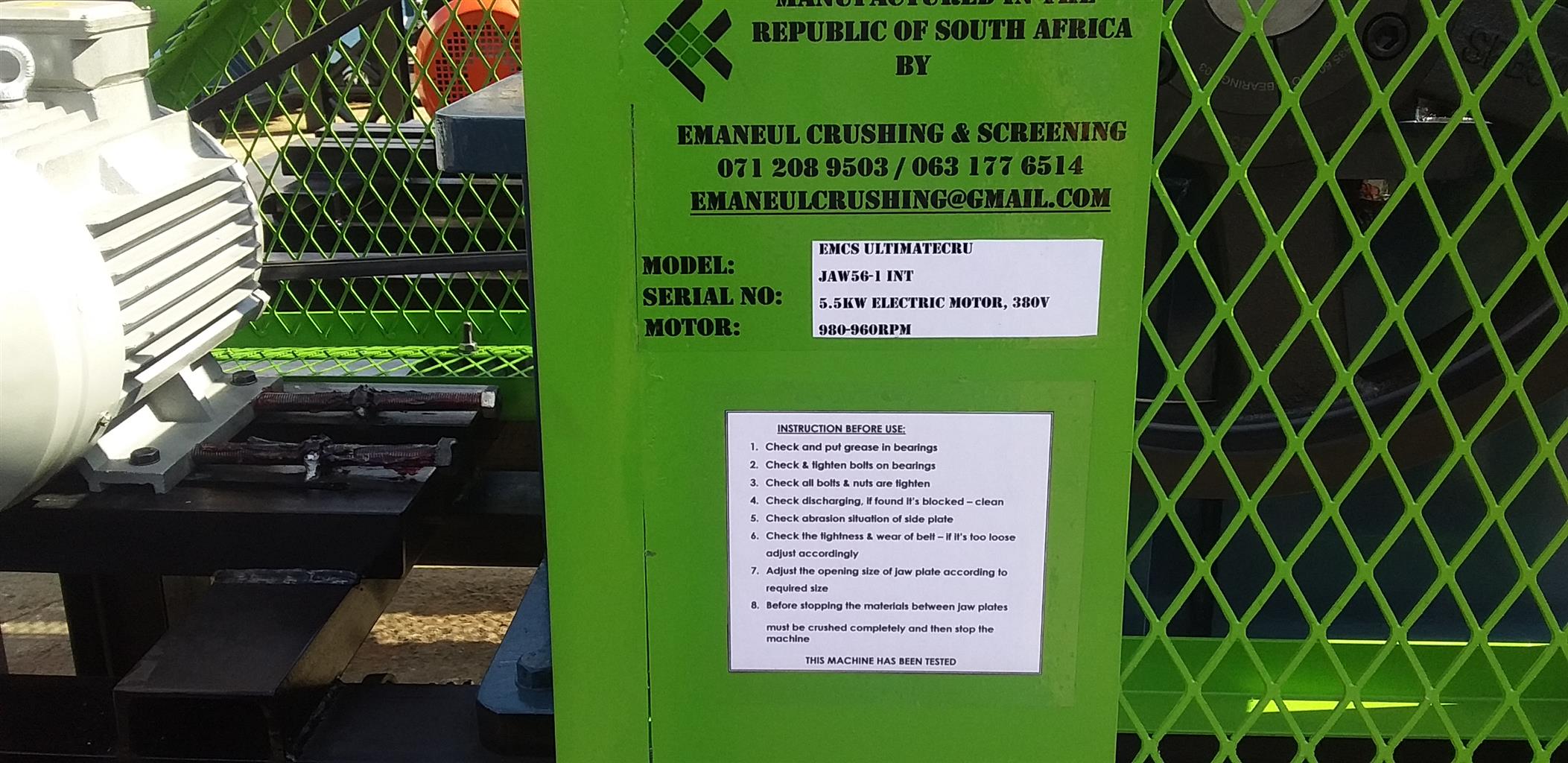 6x10 150x250 jaw crusher on structure with motor of your choice electric or diesel