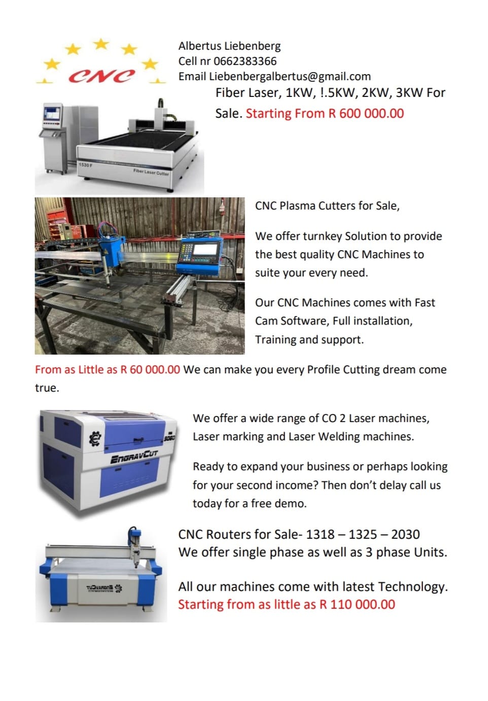 Do you own a Plasma cutter , Laser machine or a Router Machine that needs parts or a service I can help you, we do maintenance and repairs with top quality parts.